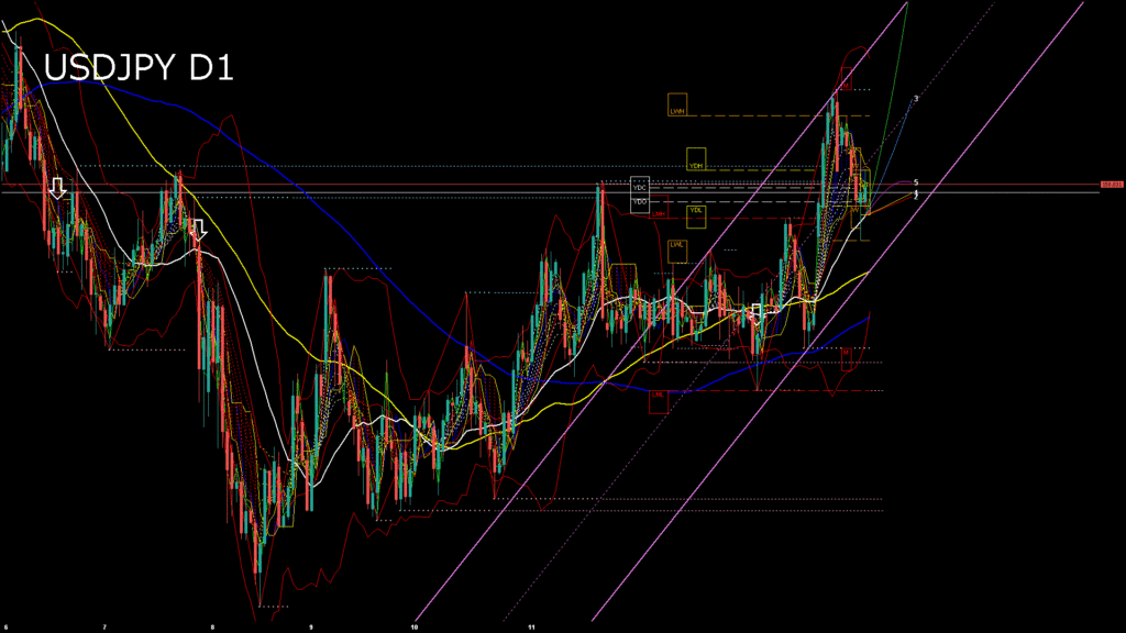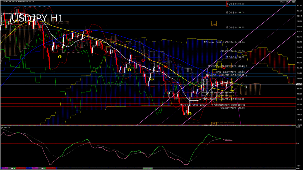USDJPY-H1移動平均線と現在値(RSI)-2025.10.21 13:00:00