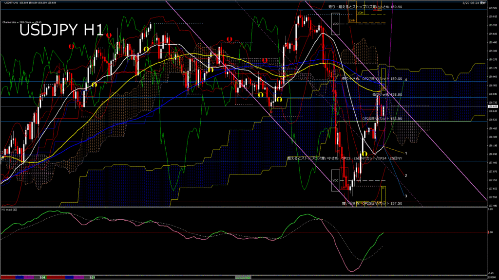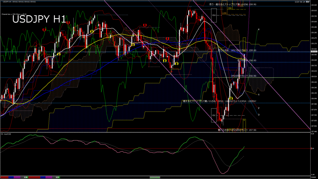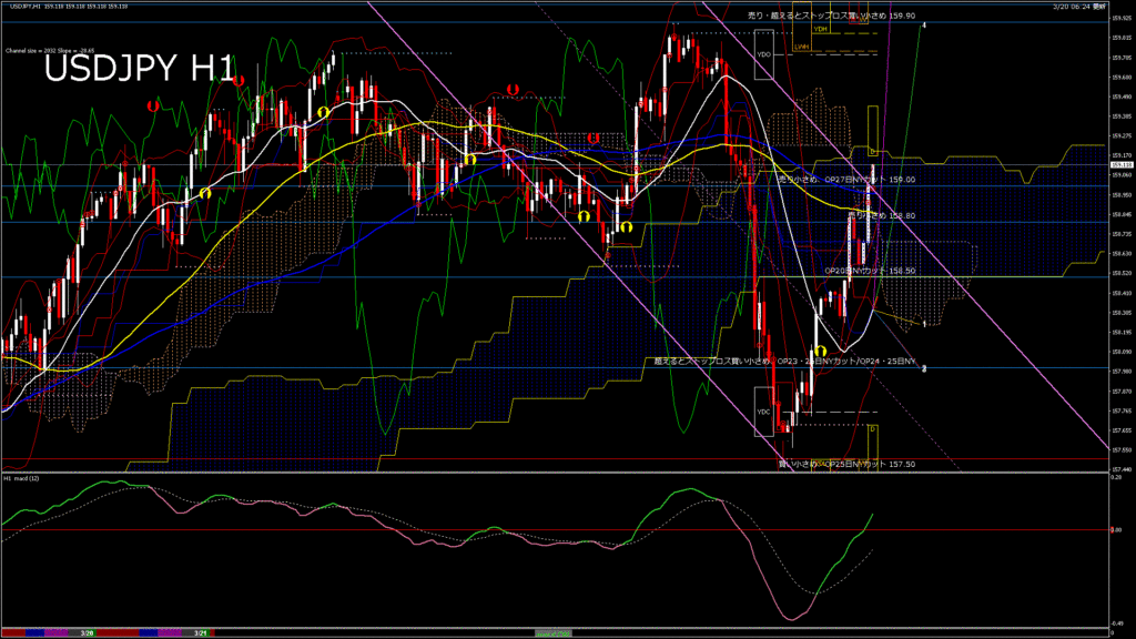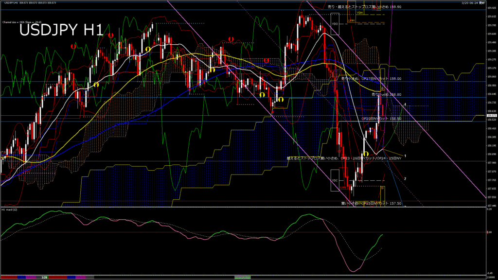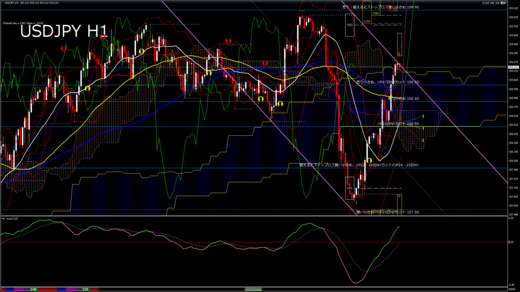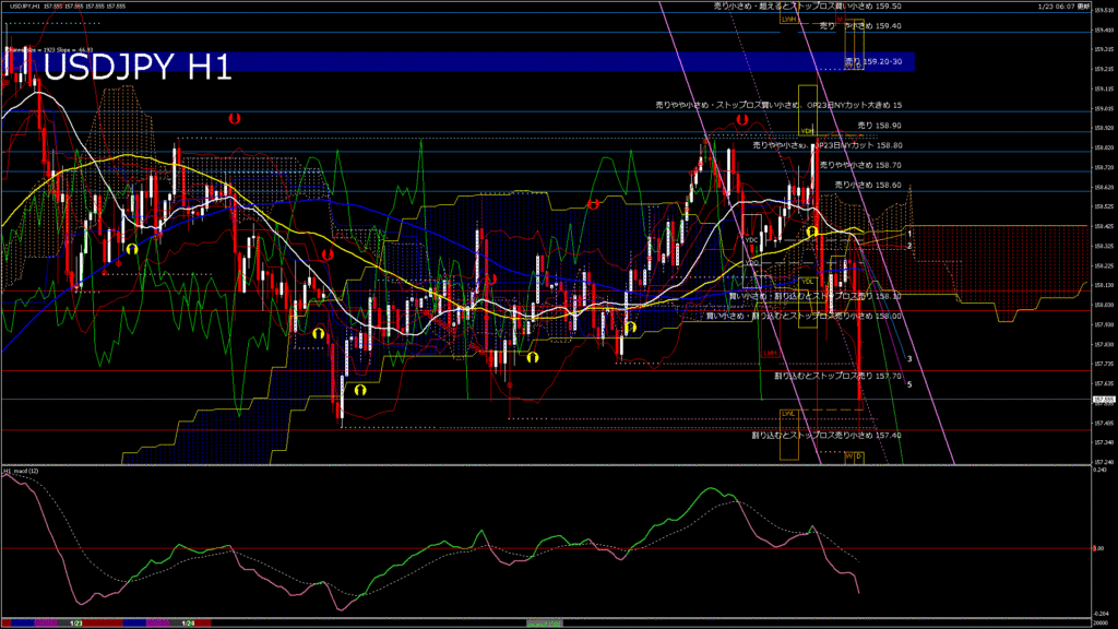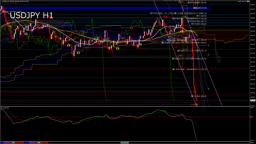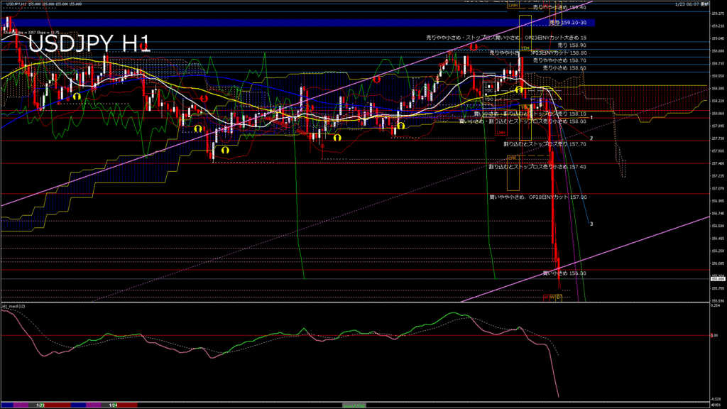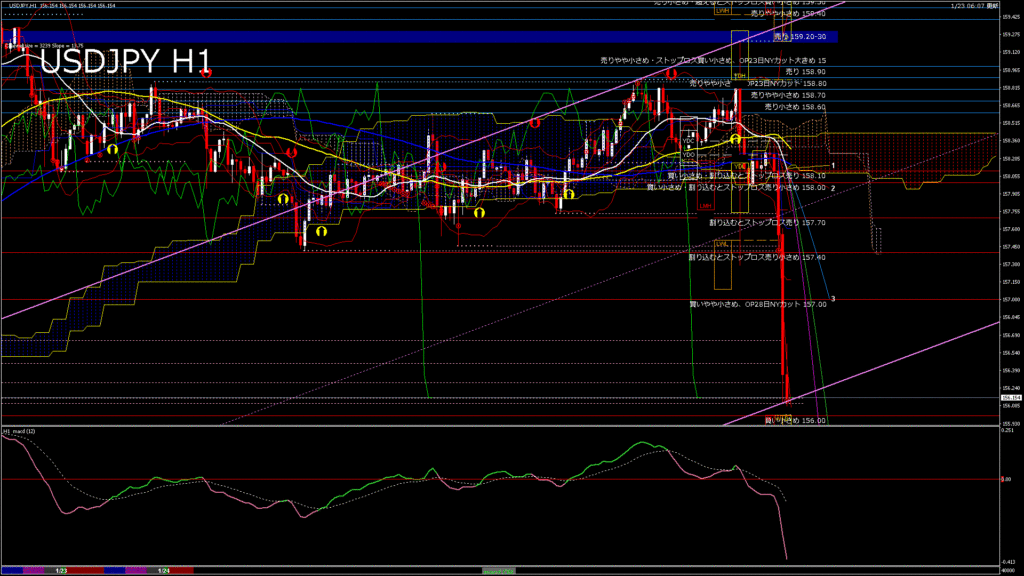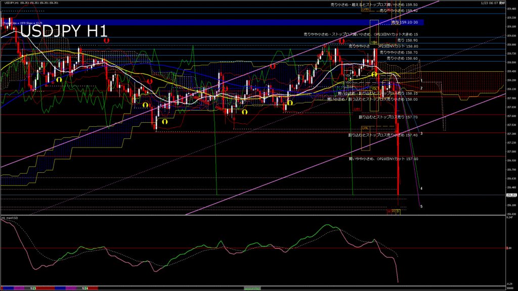情報 USDJPY-H1移動平均線と現在値(RSI)-2026.1.24 6:00:00
