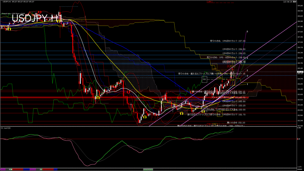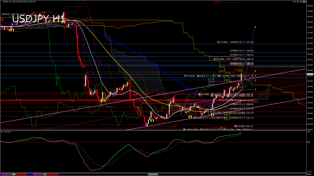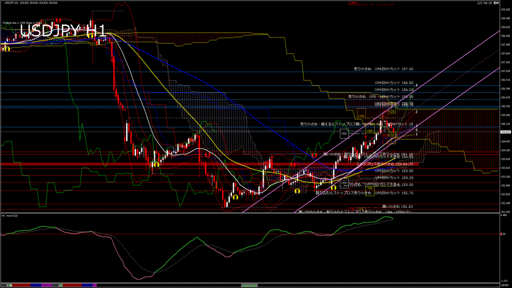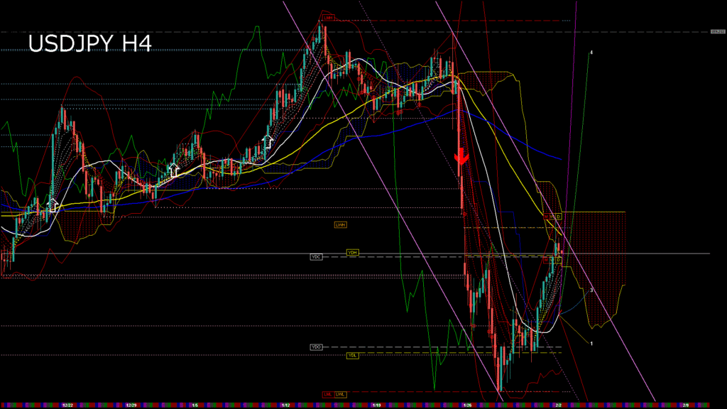 情報 USDJPY-H1移動平均線と現在値(RSI)-2026.2.4 8:00:00