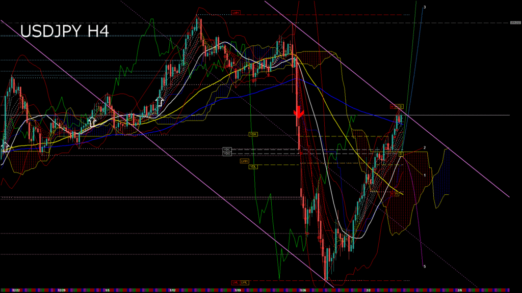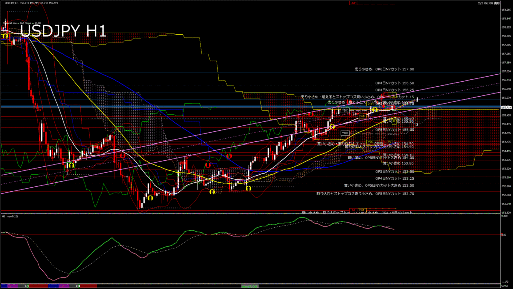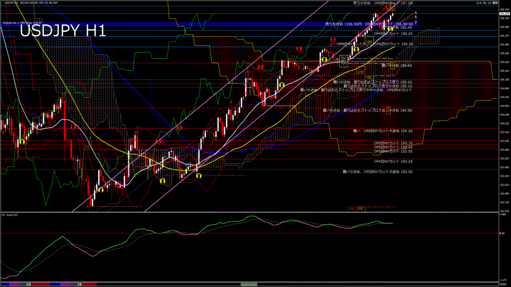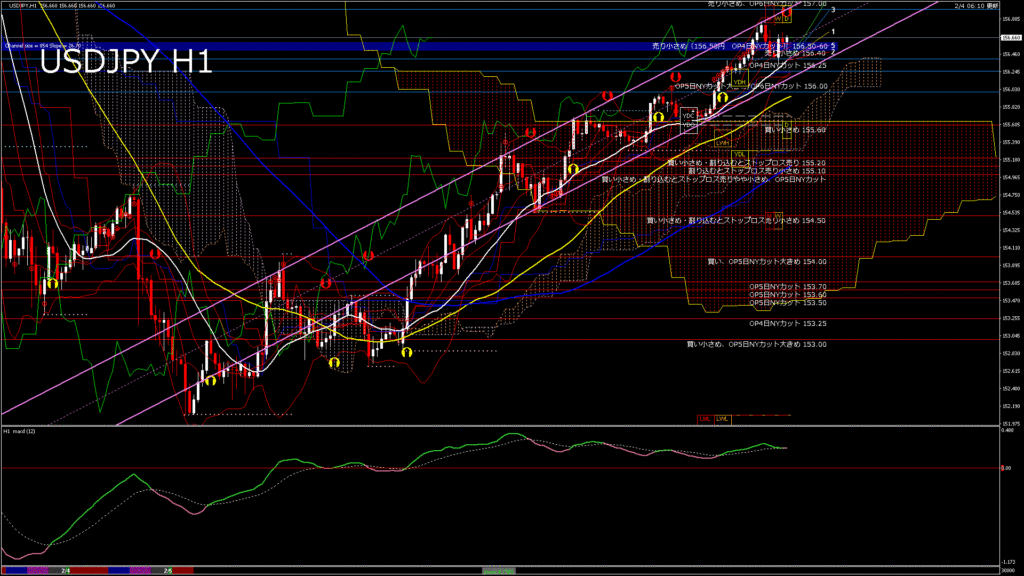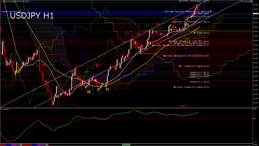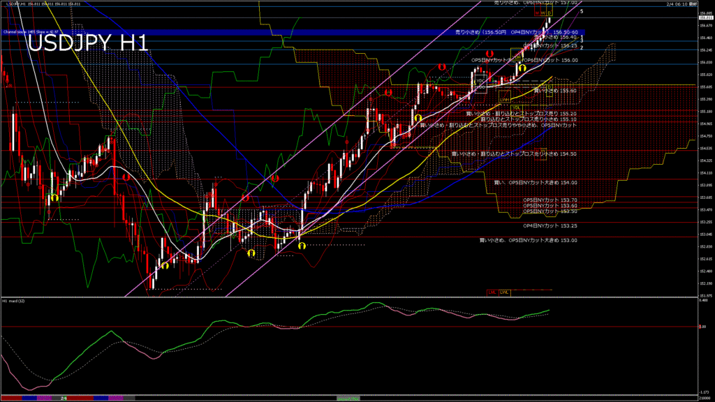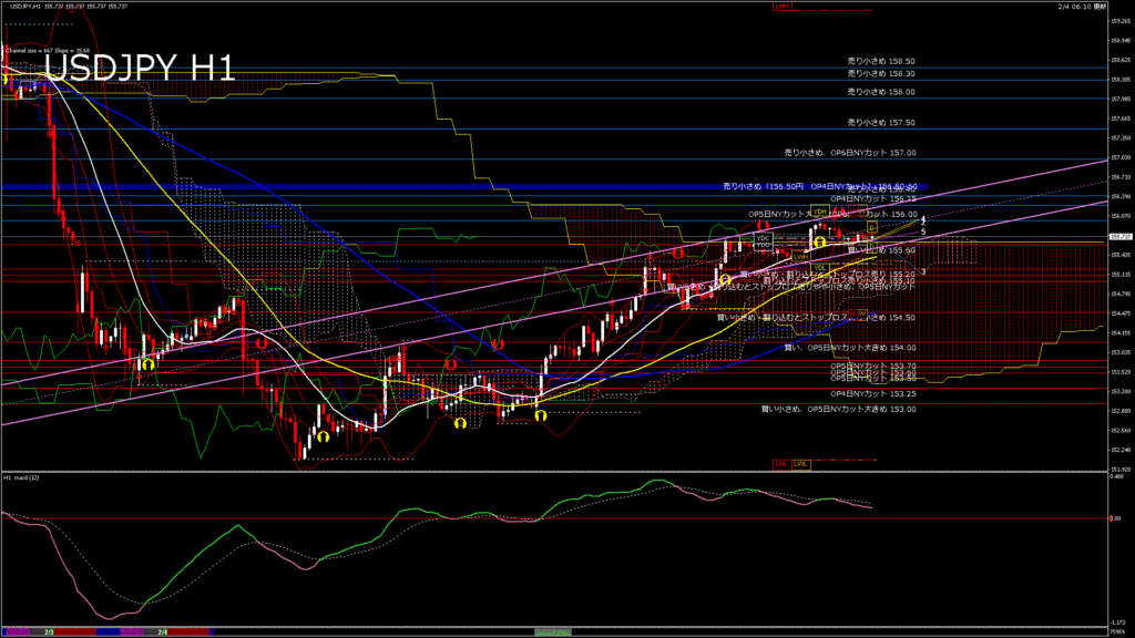 情報 USDJPY-H1移動平均線と現在値(RSI)-2026.2.5 6:00:00