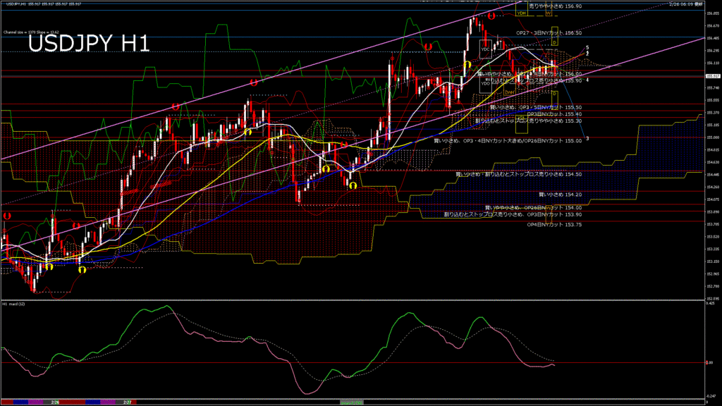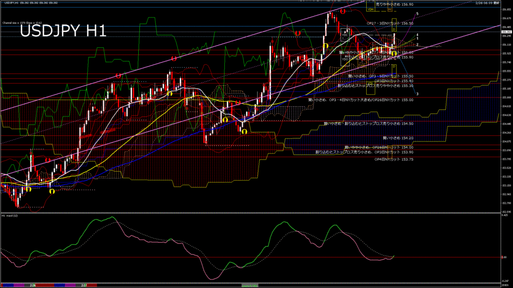 情報 USDJPY-H1移動平均線と現在値(RSI)-2026.2.27 6:00:00