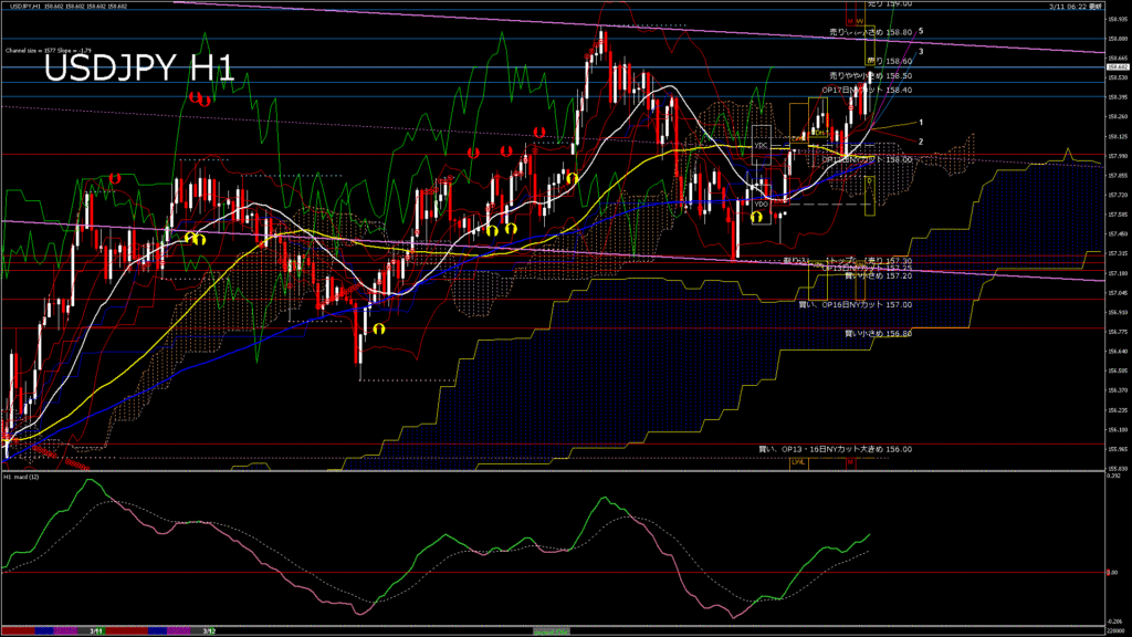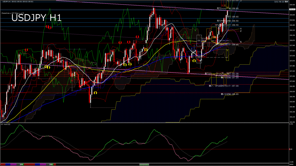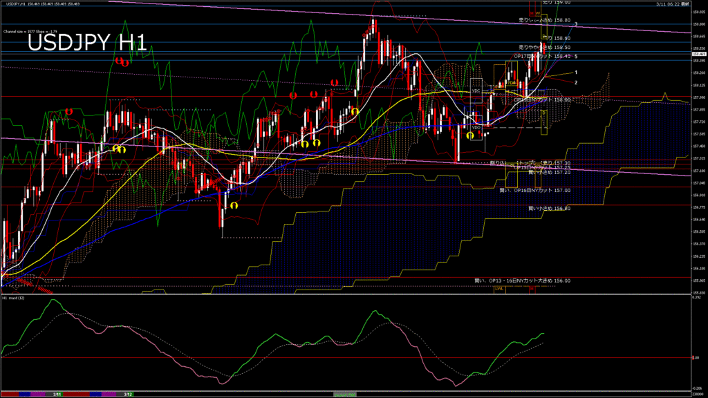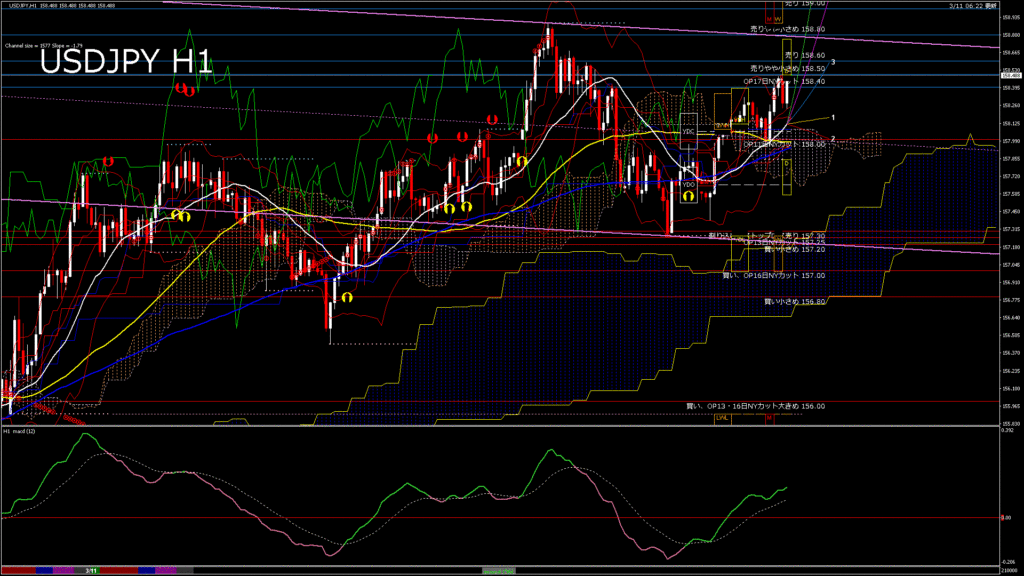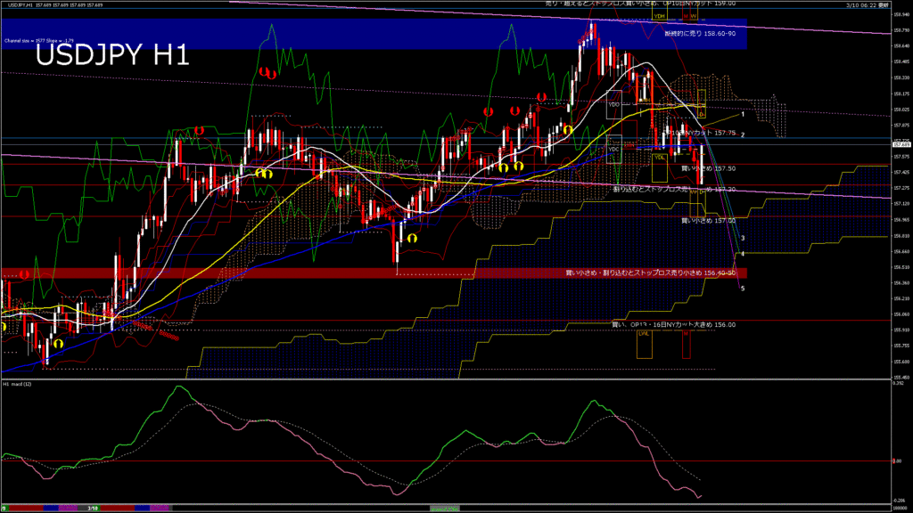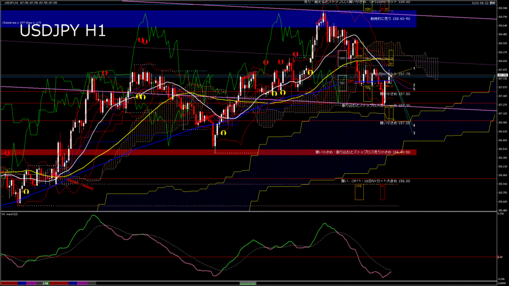 情報 USDJPY-H4移動平均線と現在値(RSI)-2026.3.10 19:00:08