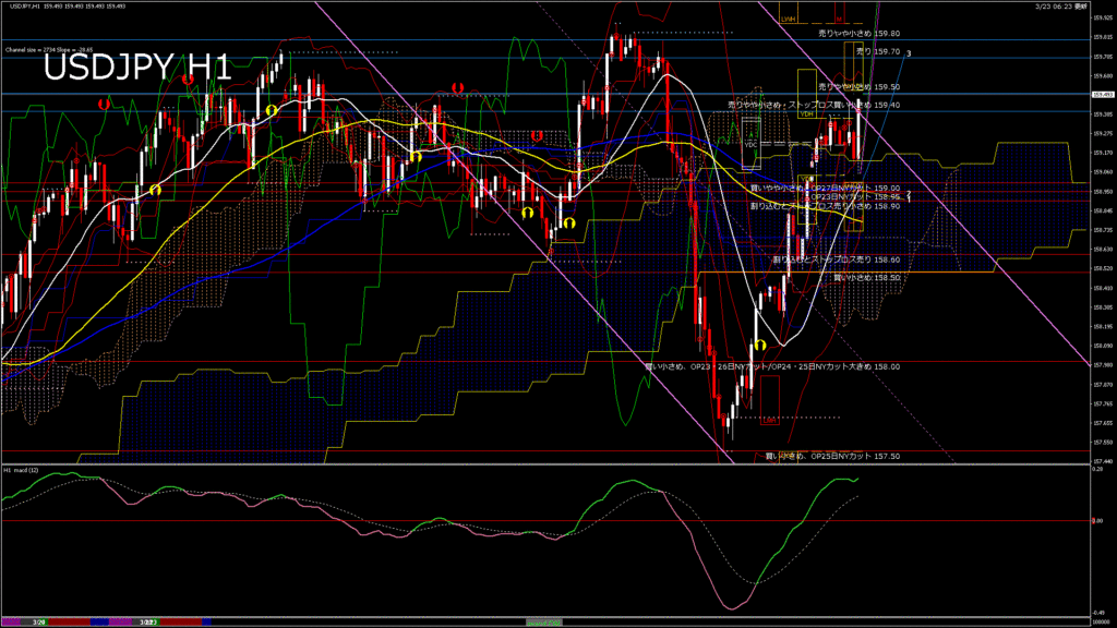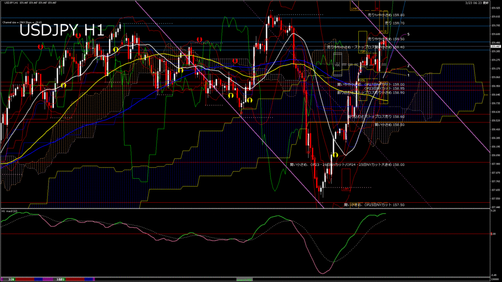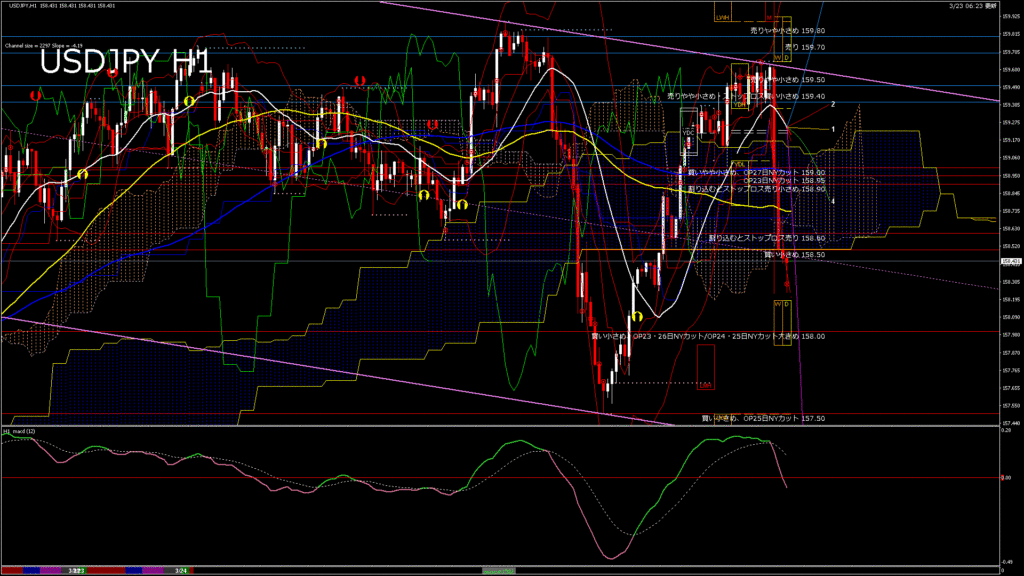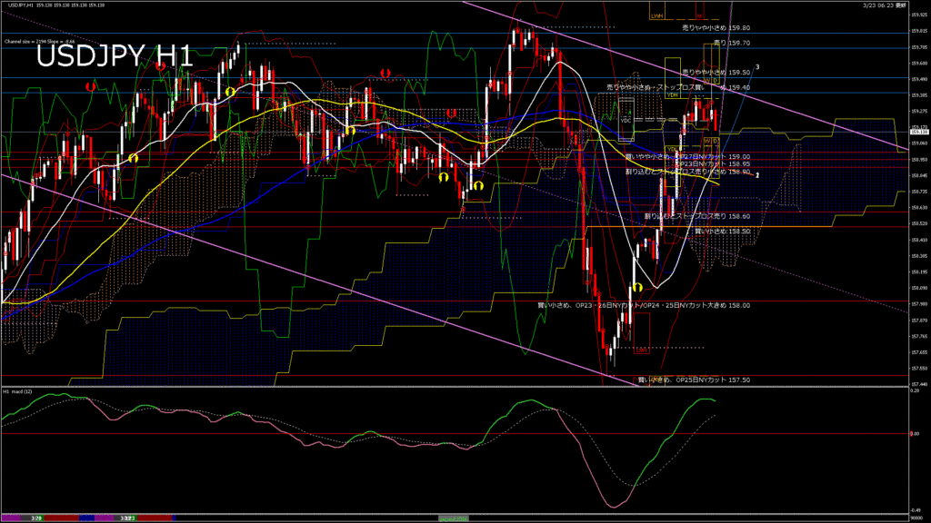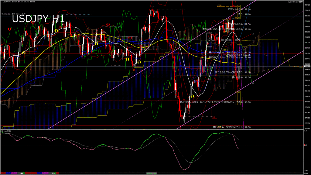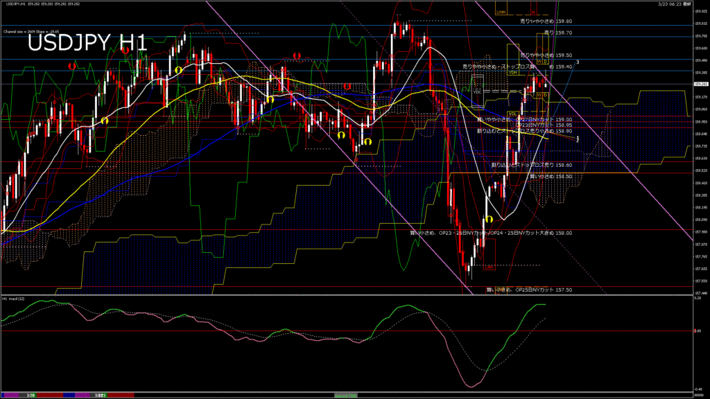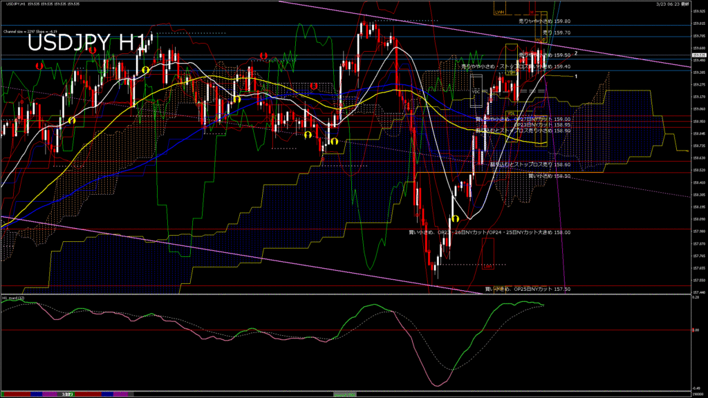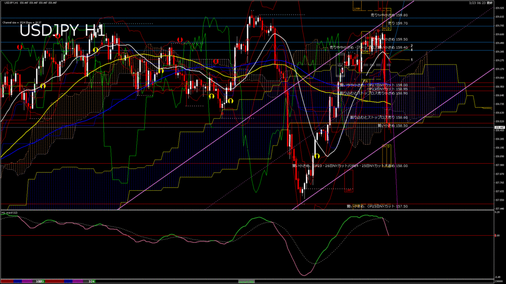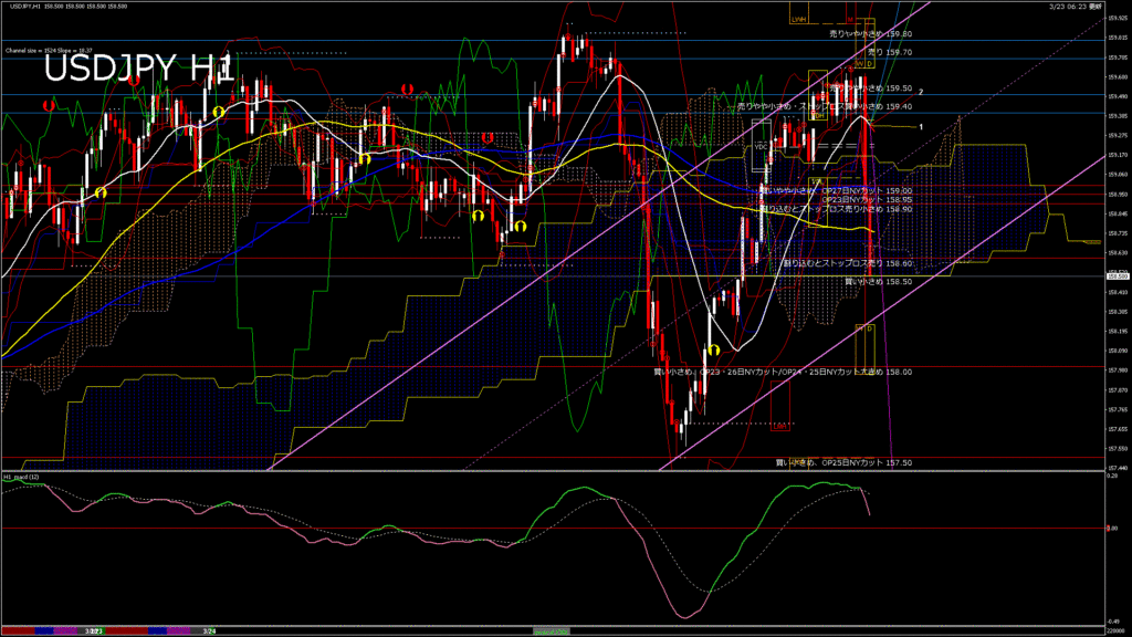 情報 USDJPY-H1移動平均線と現在値(RSI)-2026.3.24 3:00:00