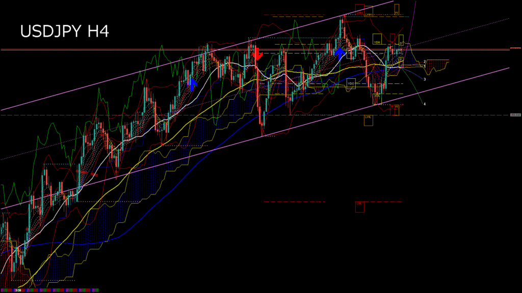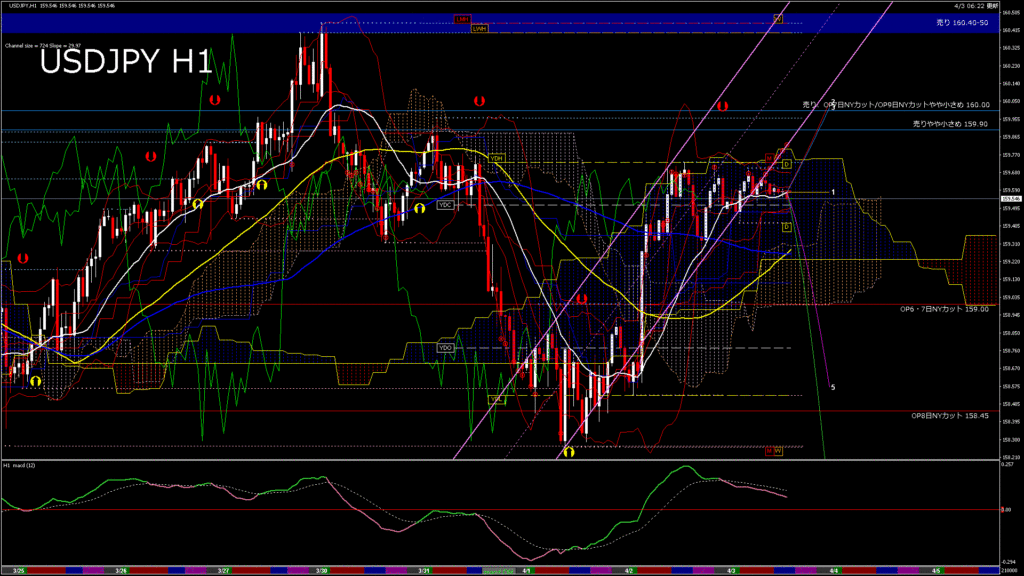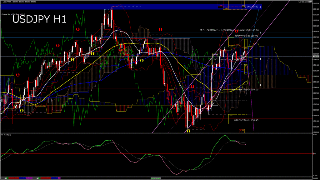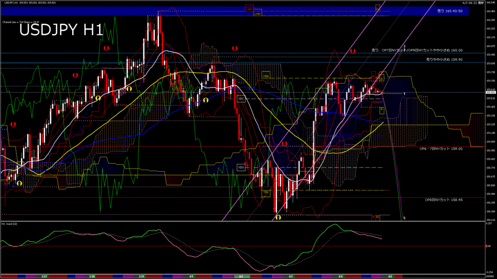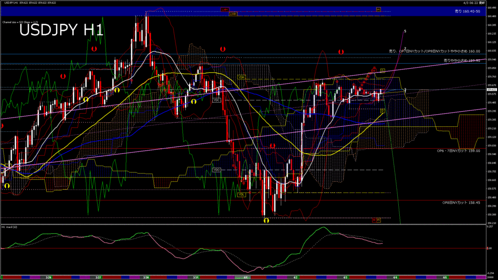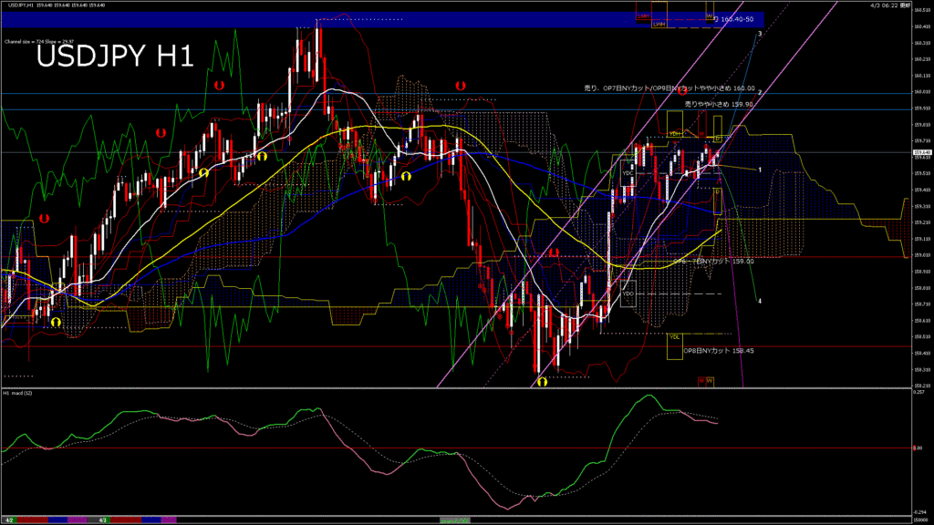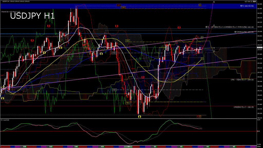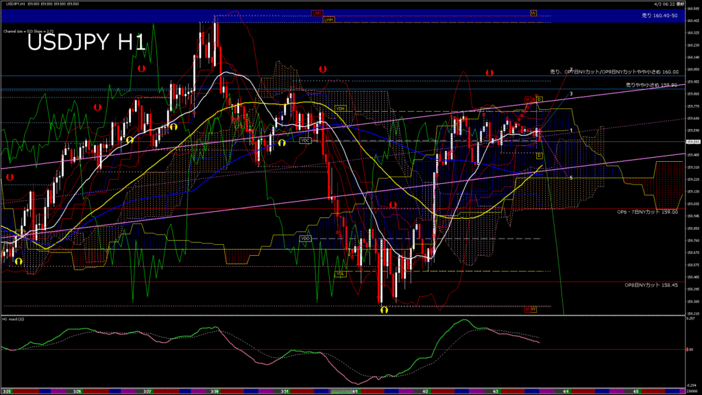 情報 USDJPY-H4移動平均線と現在値(RSI)-2026.4.3 18:00:06