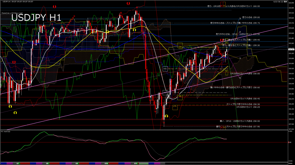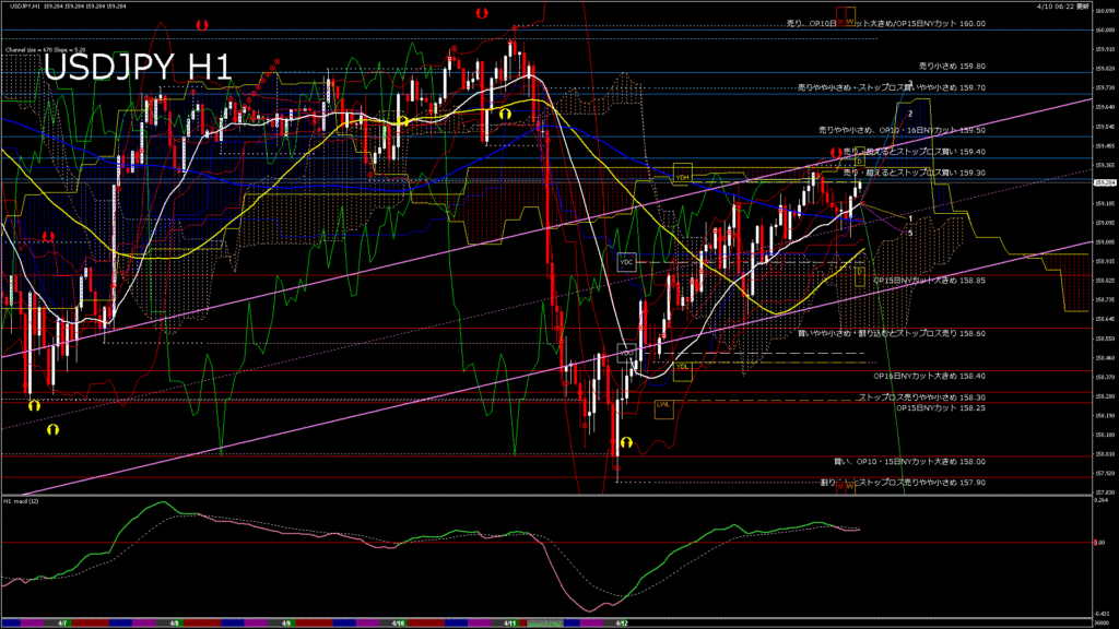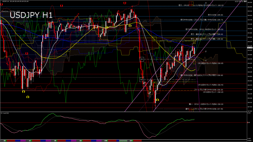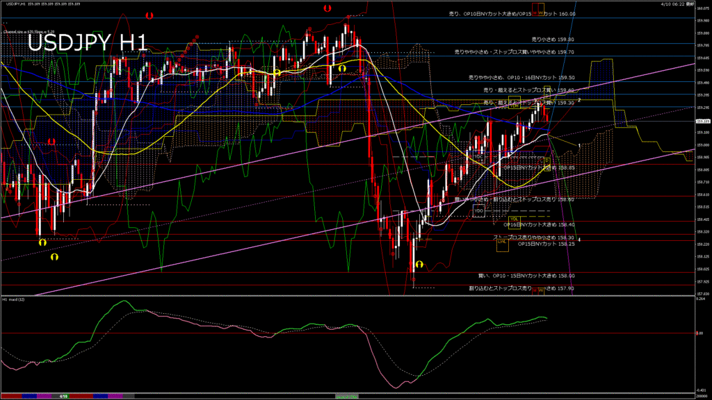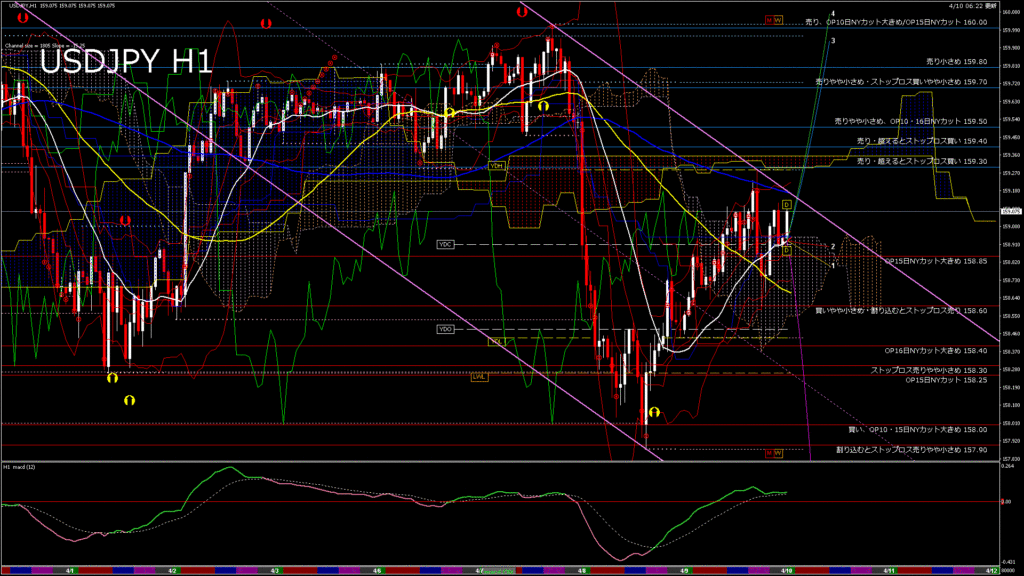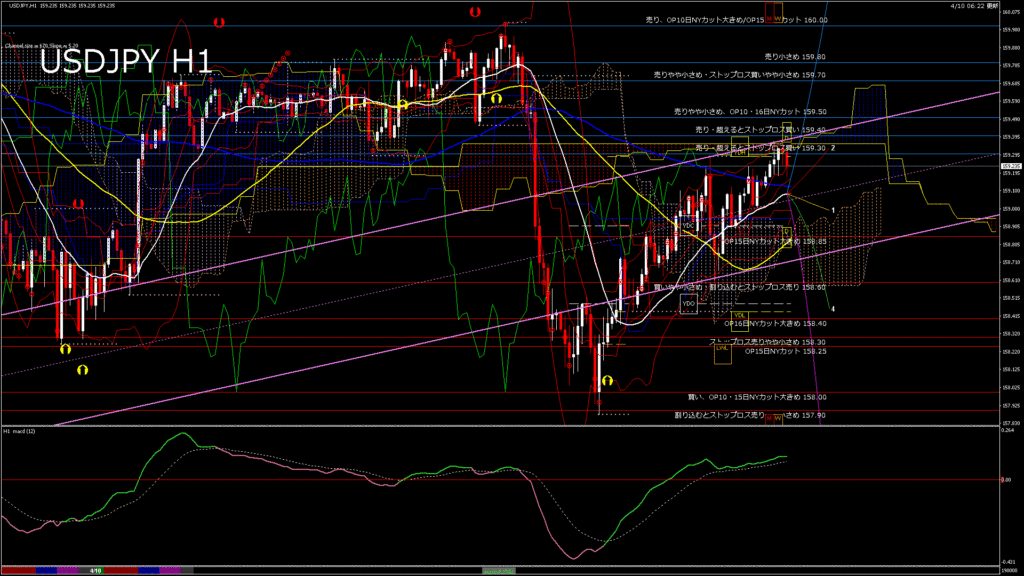 情報 USDJPY-H1移動平均線と現在値(RSI)-2026.4.10 17:00:00
