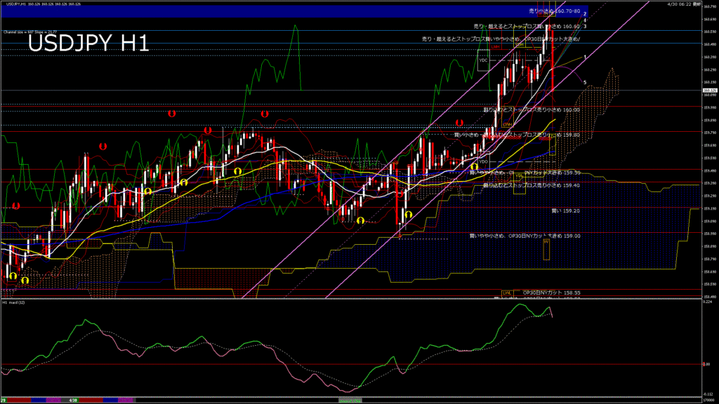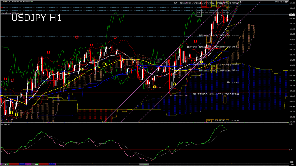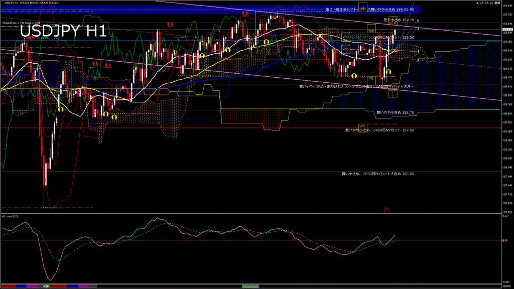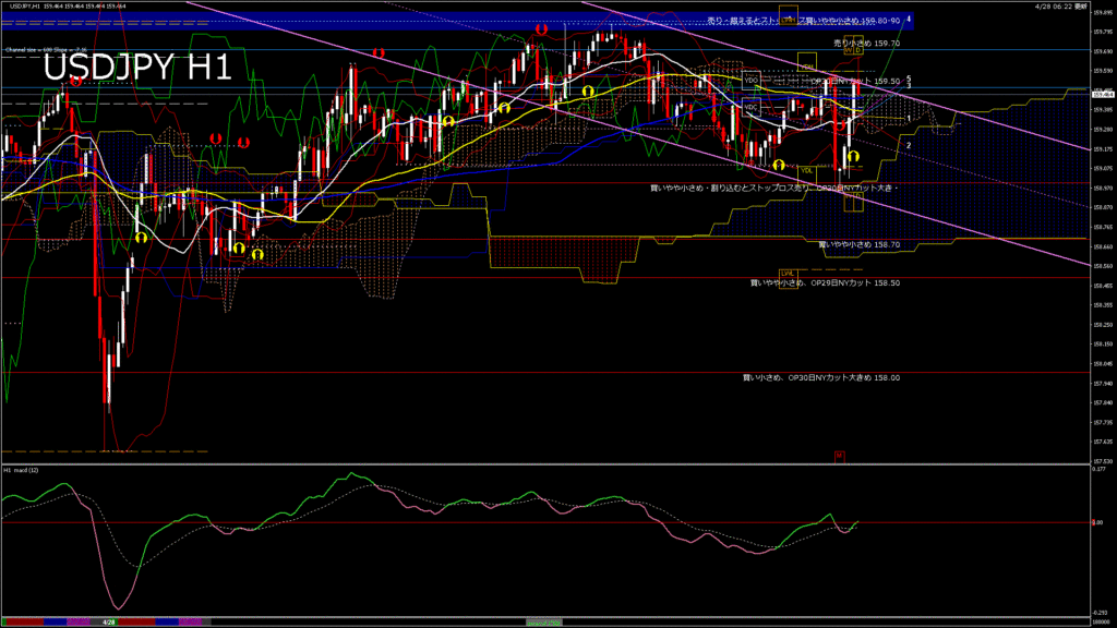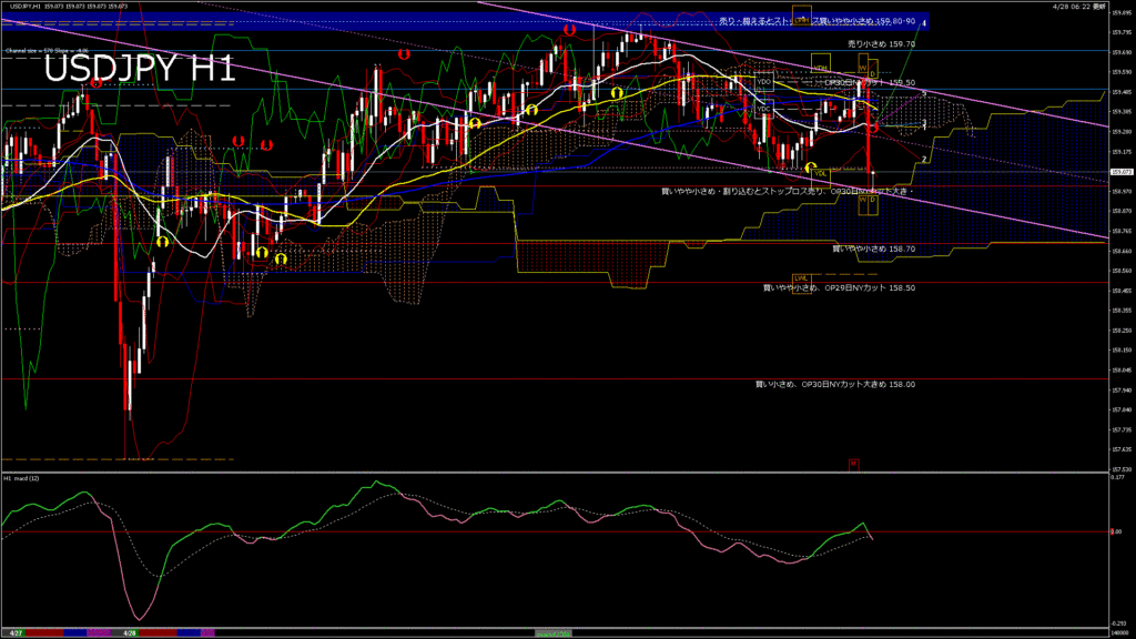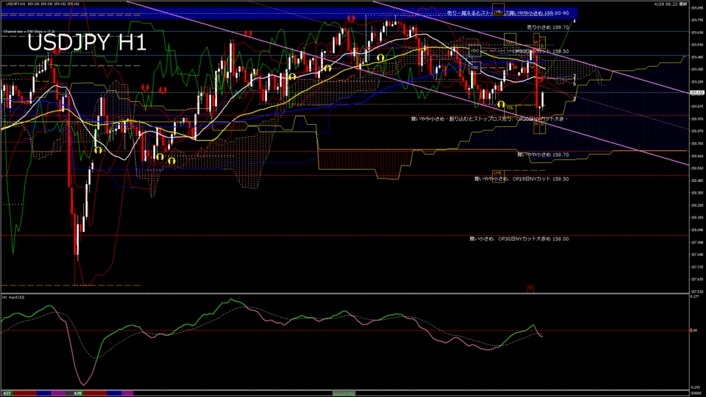 情報 USDJPY-H1移動平均線と現在値(RSI)-2026.4.28 20:00:00