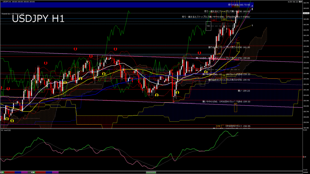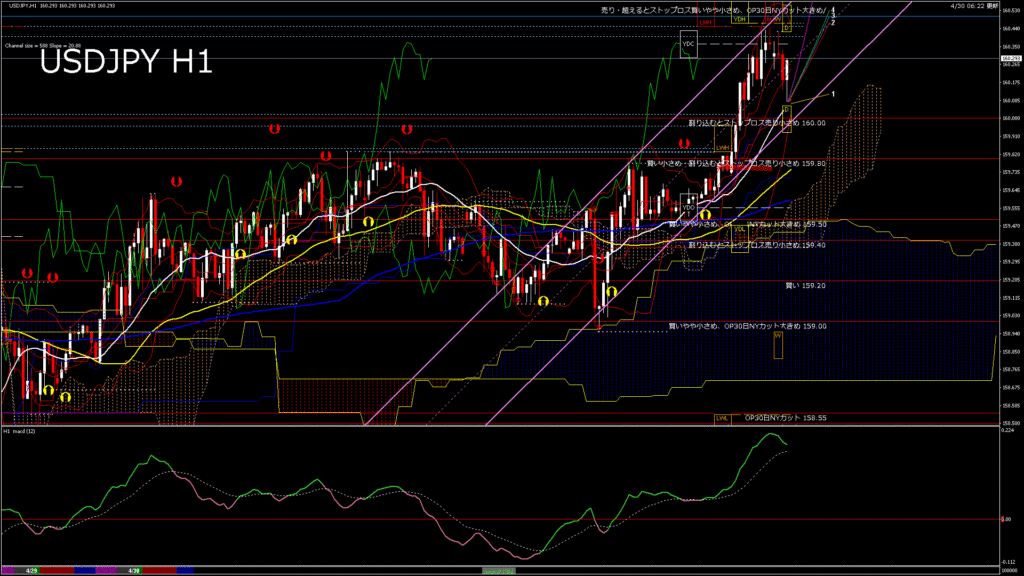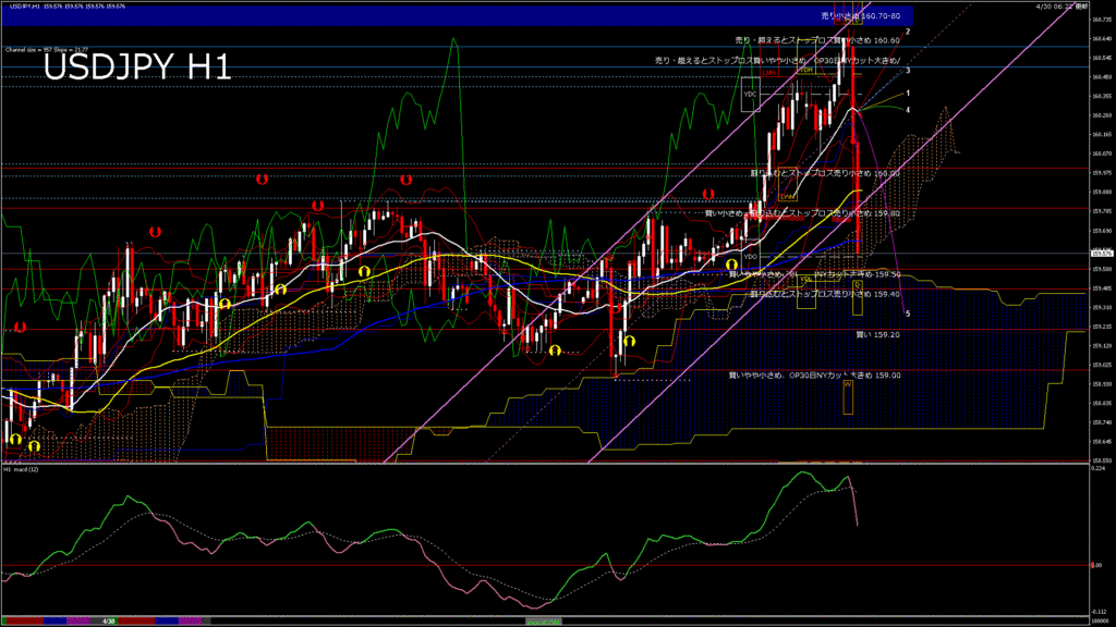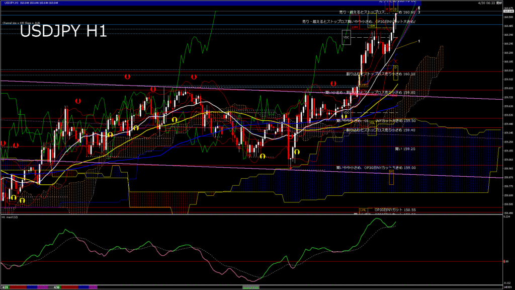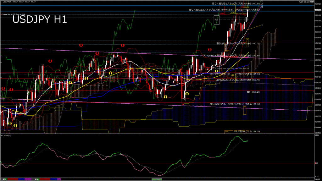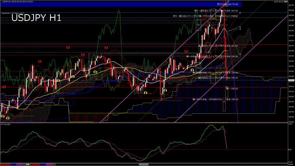 情報 USDJPY-H1移動平均線と現在値(RSI)-2026.4.28 20:00:00