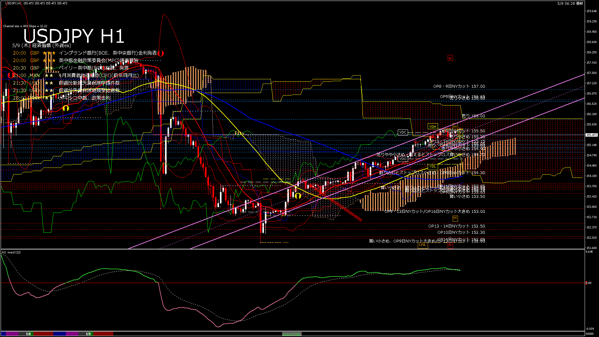 USDJPY-H1移動平均線と現在値(RSI)-2024.5.9 6:00:01