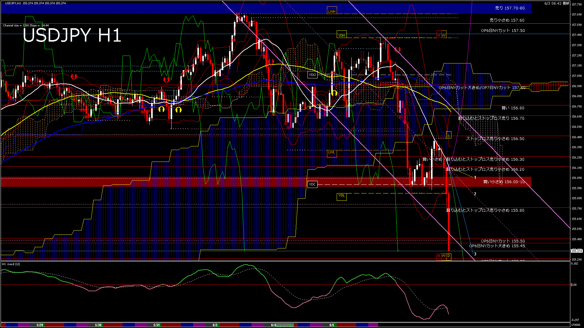 USDJPY-H1移動平均線と現在値(RSI)-2024.6.4 17:00:00