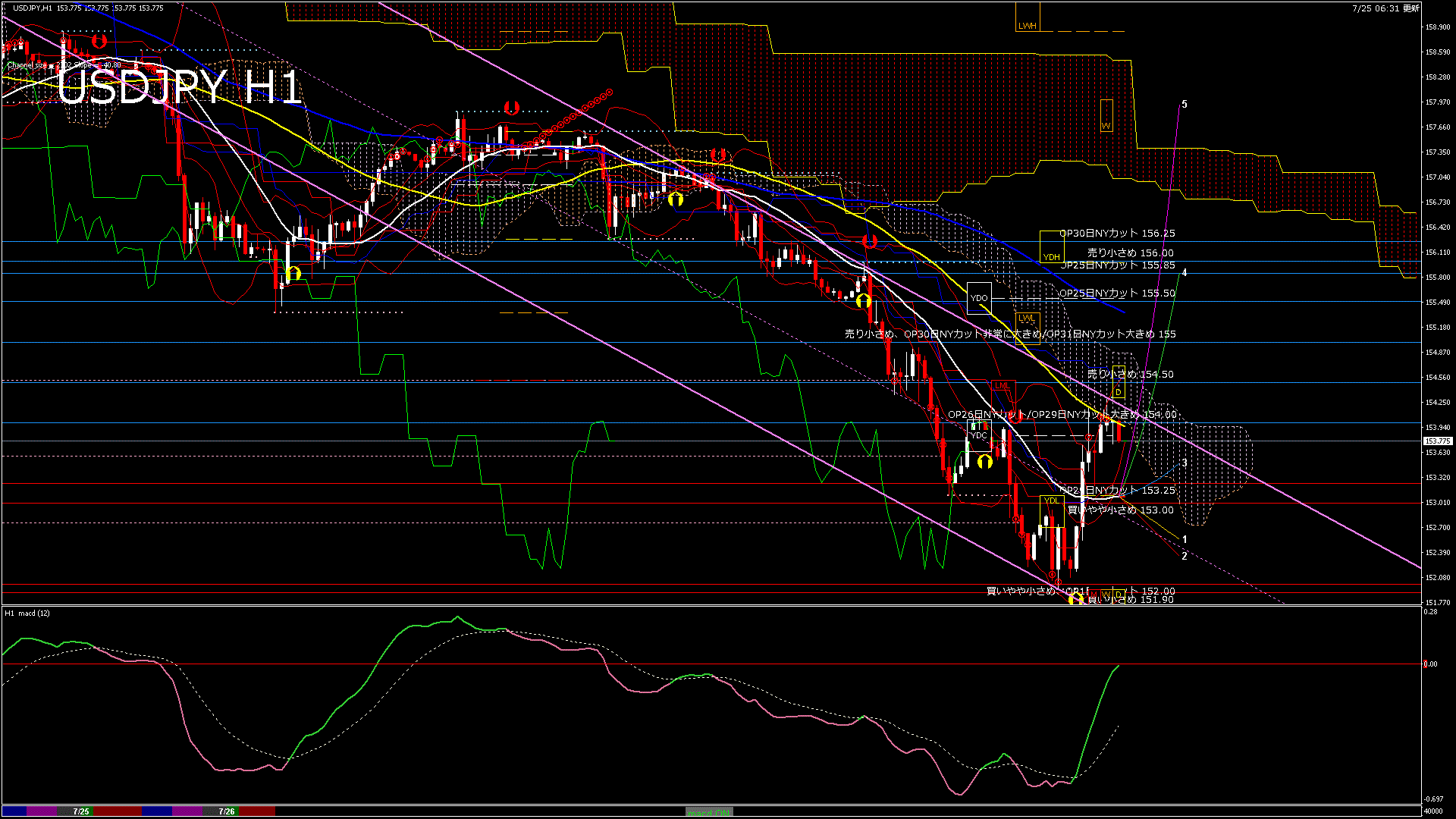 USDJPY-H1移動平均線と現在値(RSI)-2024.7.26 5:00:00