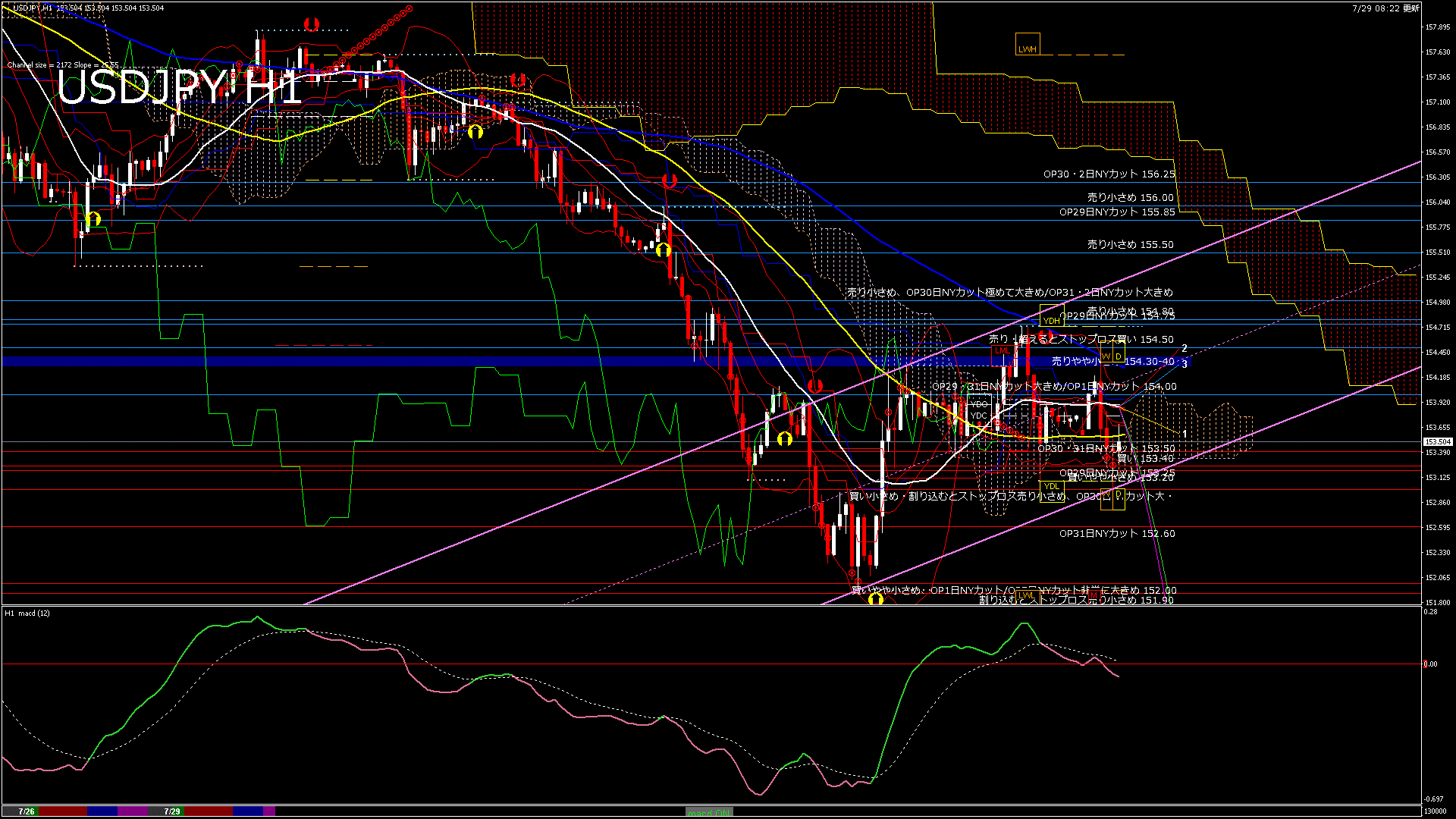 USDJPY-H4移動平均線と現在値(RSI)-2024.7.29 14:00:03