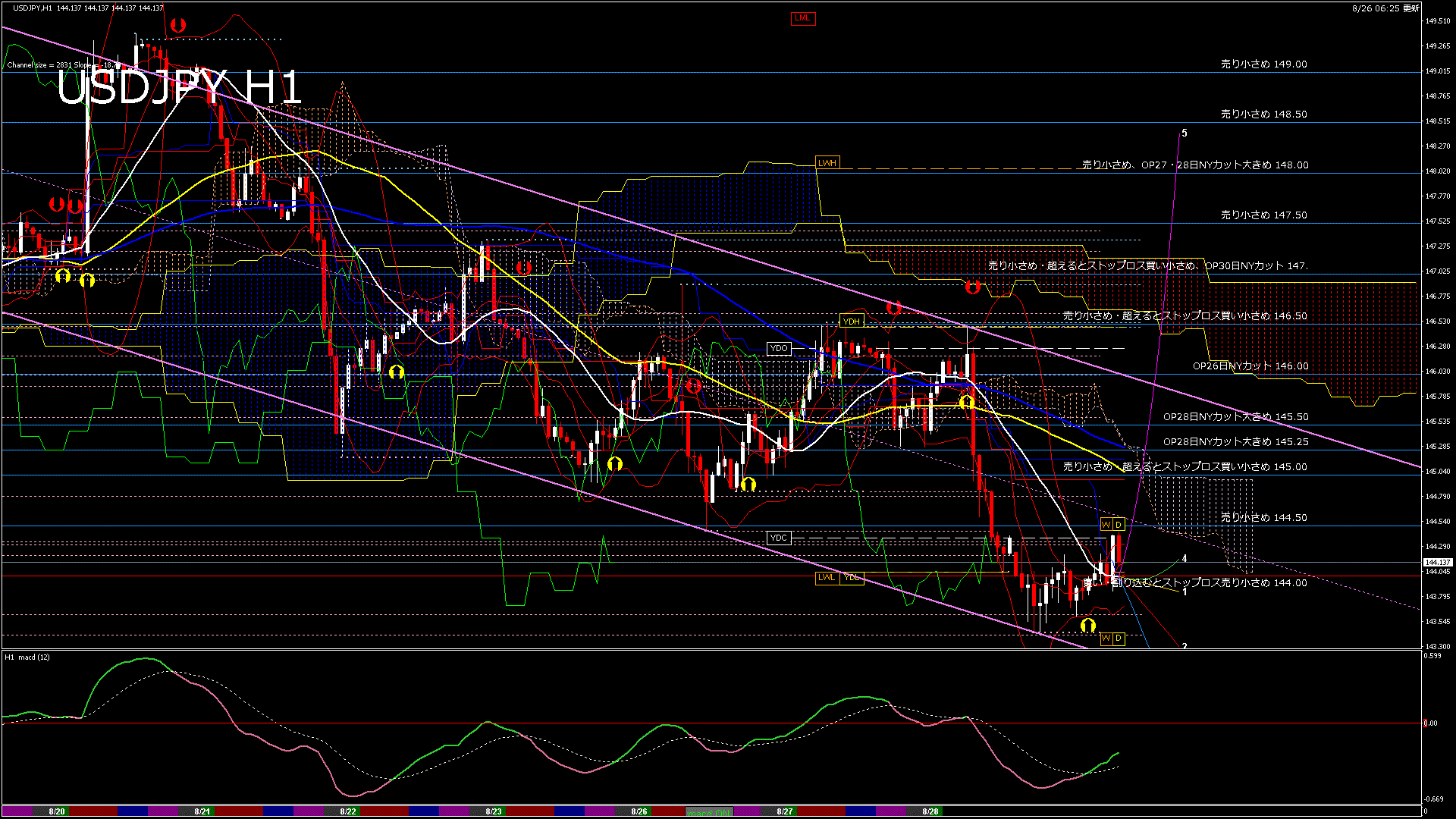 USDJPY-H1移動平均線と現在値(RSI)-2024.8.27 0:00:00