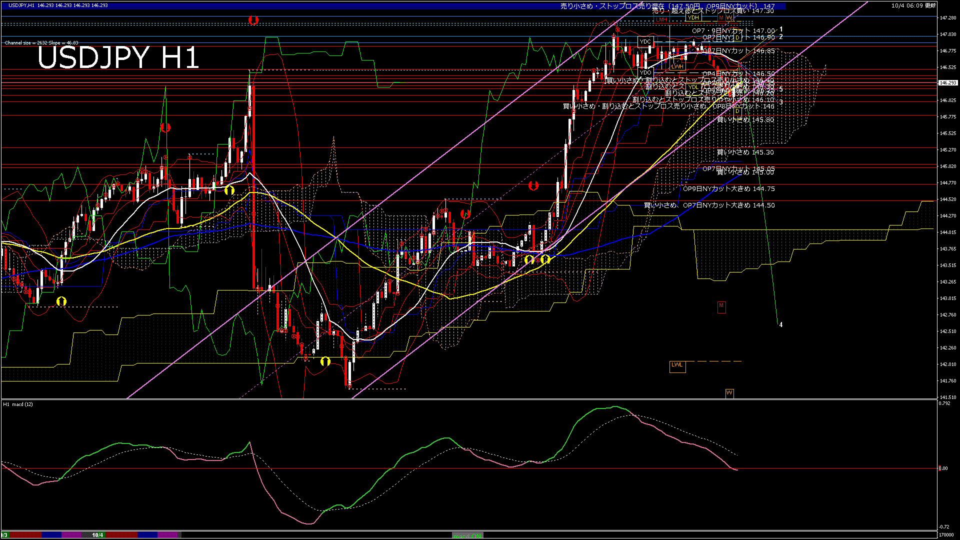 USDJPY-H1移動平均線と現在値(RSI)-2024.10.4 17:00:00