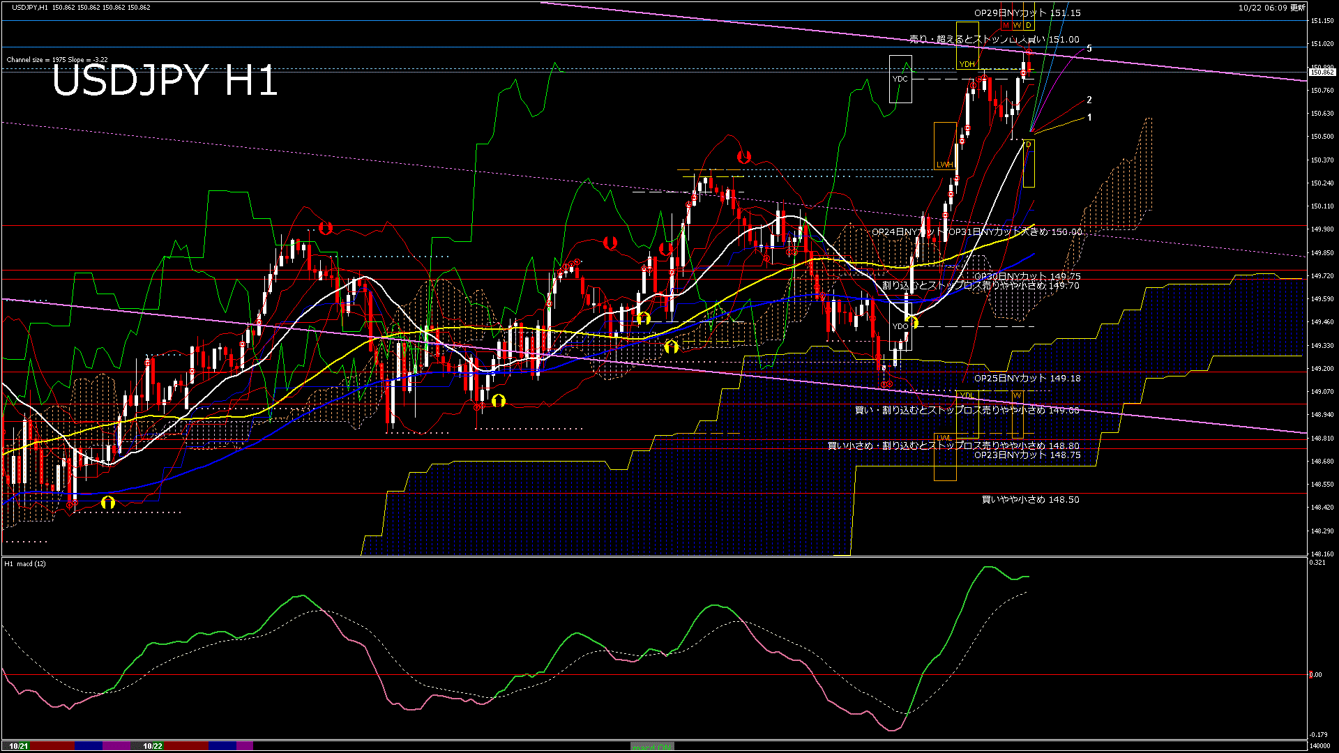 USDJPY-H1移動平均線と現在値(RSI)-2024.10.22 14:00:00