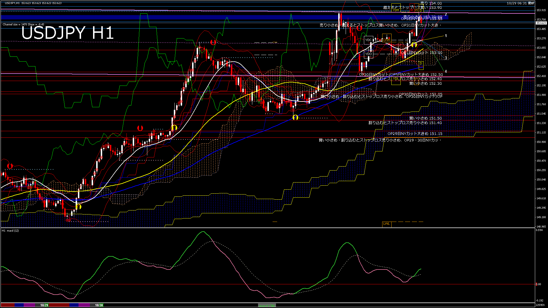 USDJPY-H1移動平均線と現在値(RSI)-2024.10.29 23:00:00