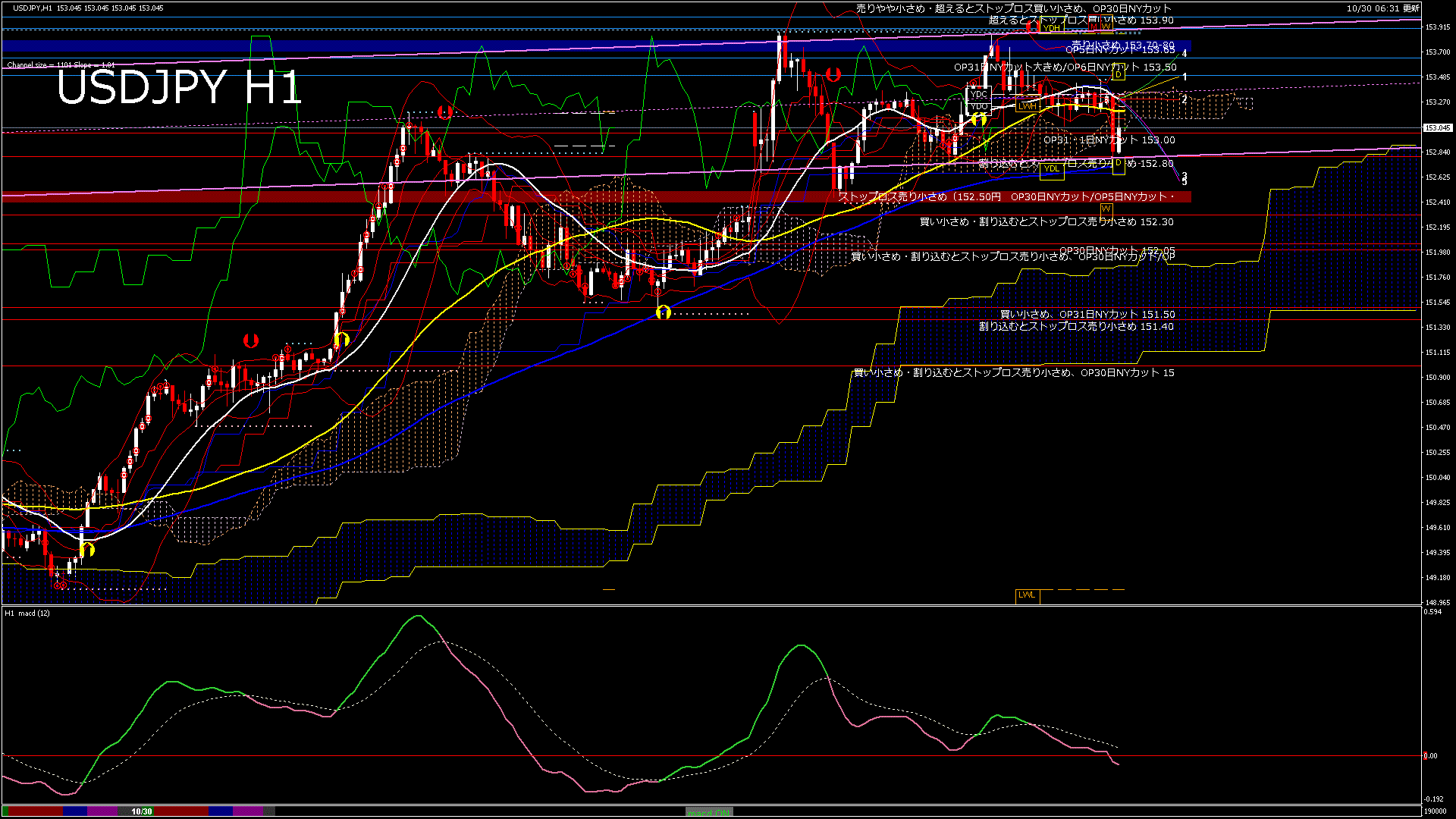 USDJPY-H1移動平均線と現在値(RSI)-2024.10.30 19:00:00
