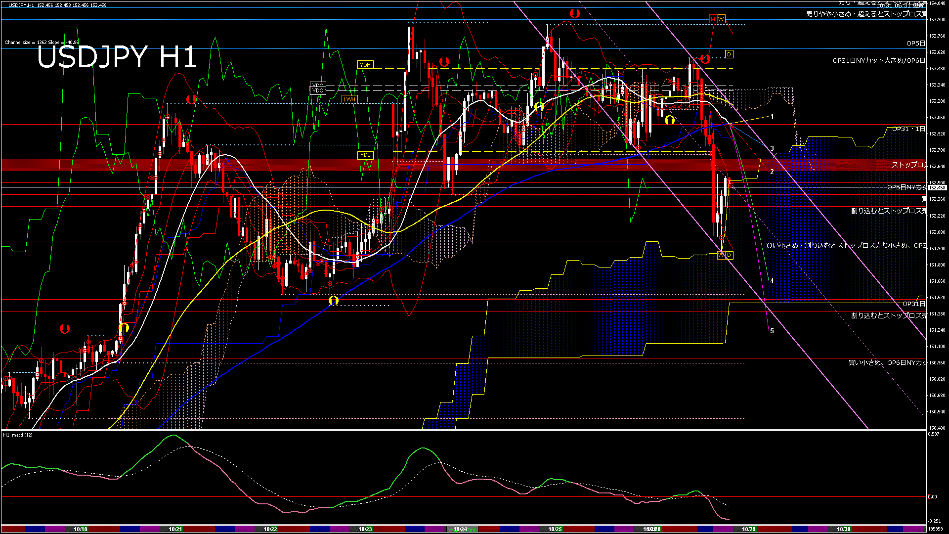 USDJPY-H1移動平均線と現在値(RSI)-2024.10.31 20:00:00