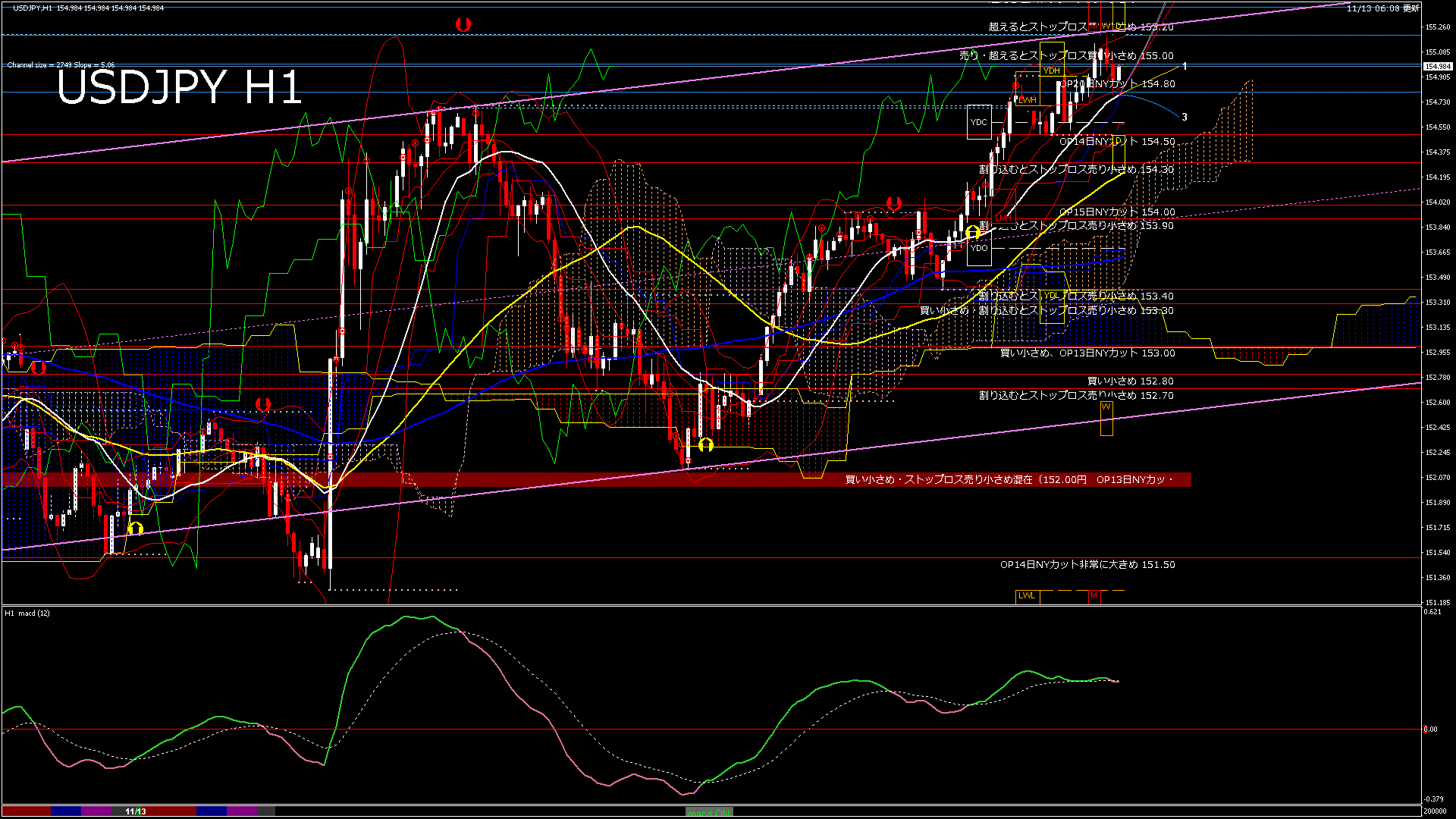 USDJPY-H1移動平均線と現在値(RSI)-2024.11.13 20:00:00