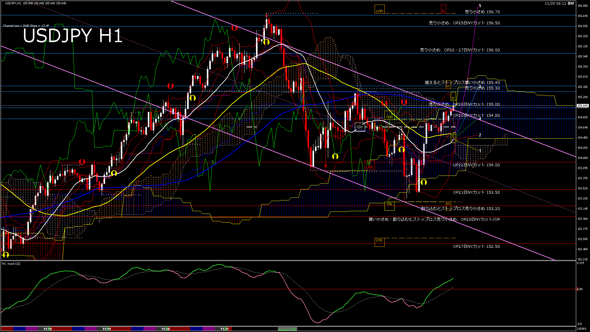 USDJPY-H1移動平均線と現在値(RSI)-2024.11.20 14:00:00