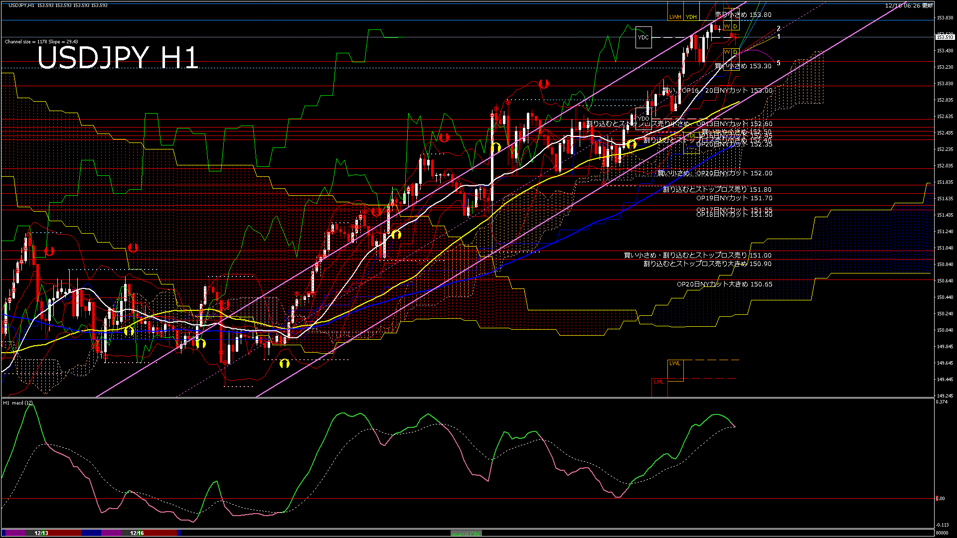 USDJPY-H1移動平均線と現在値(RSI)-2024.12.16 8:00:00