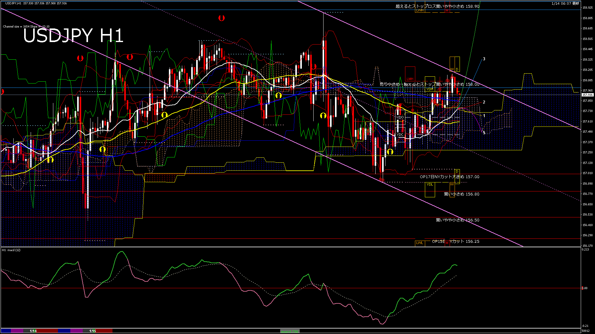 USDJPY-H1移動平均線と現在値(RSI)-2025.1.15 5:00:15