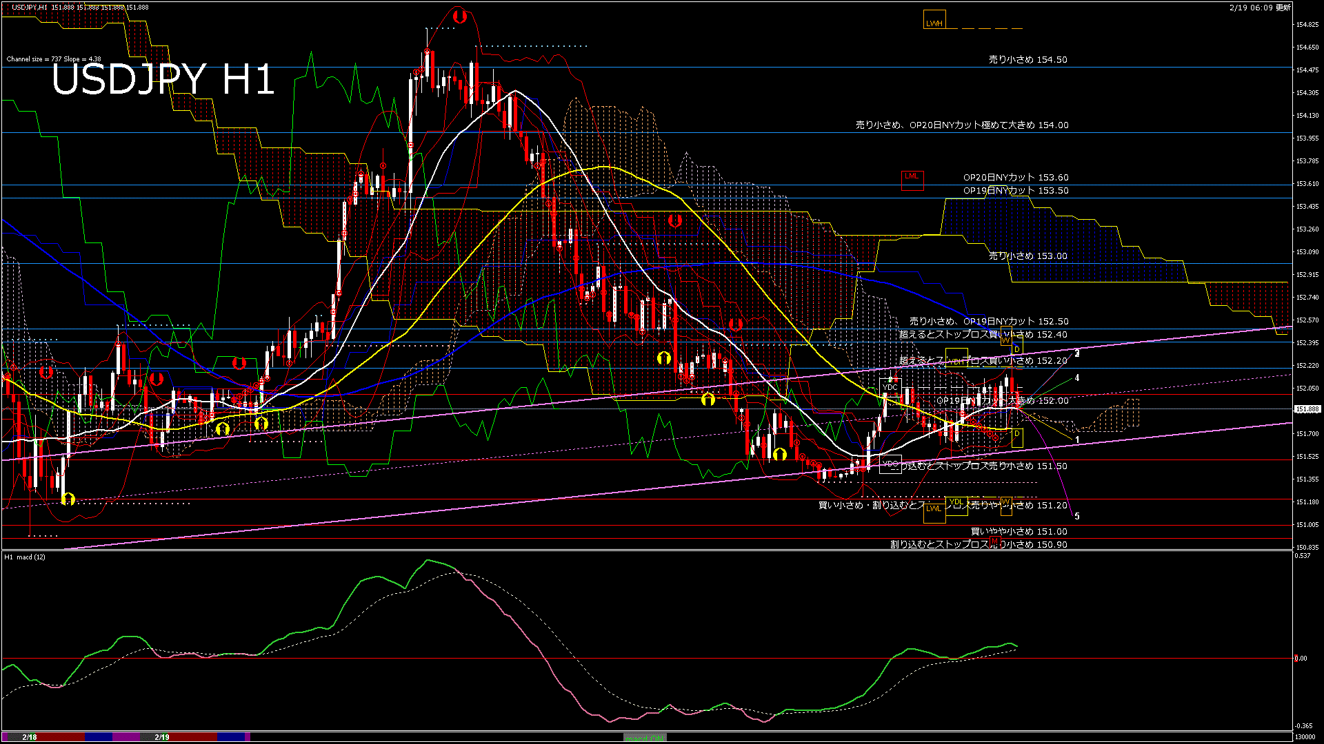 USDJPY-H1移動平均線と現在値(RSI)-2025.2.19 13:00:00