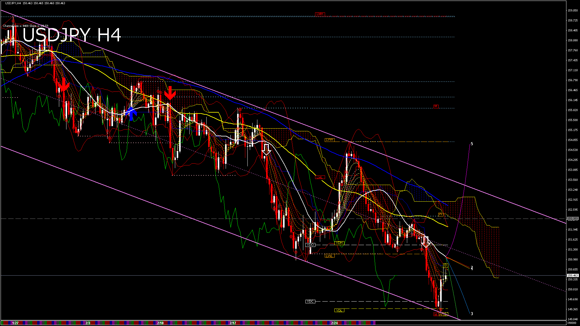 移動平均線の状態: 下降パーフェクトオーダー中(下向きトレンド)