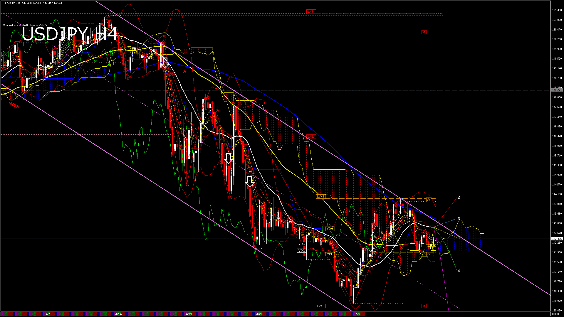 USDJPY-H4移動平均線と現在値(RSI)-2025.4.30 11:00:09