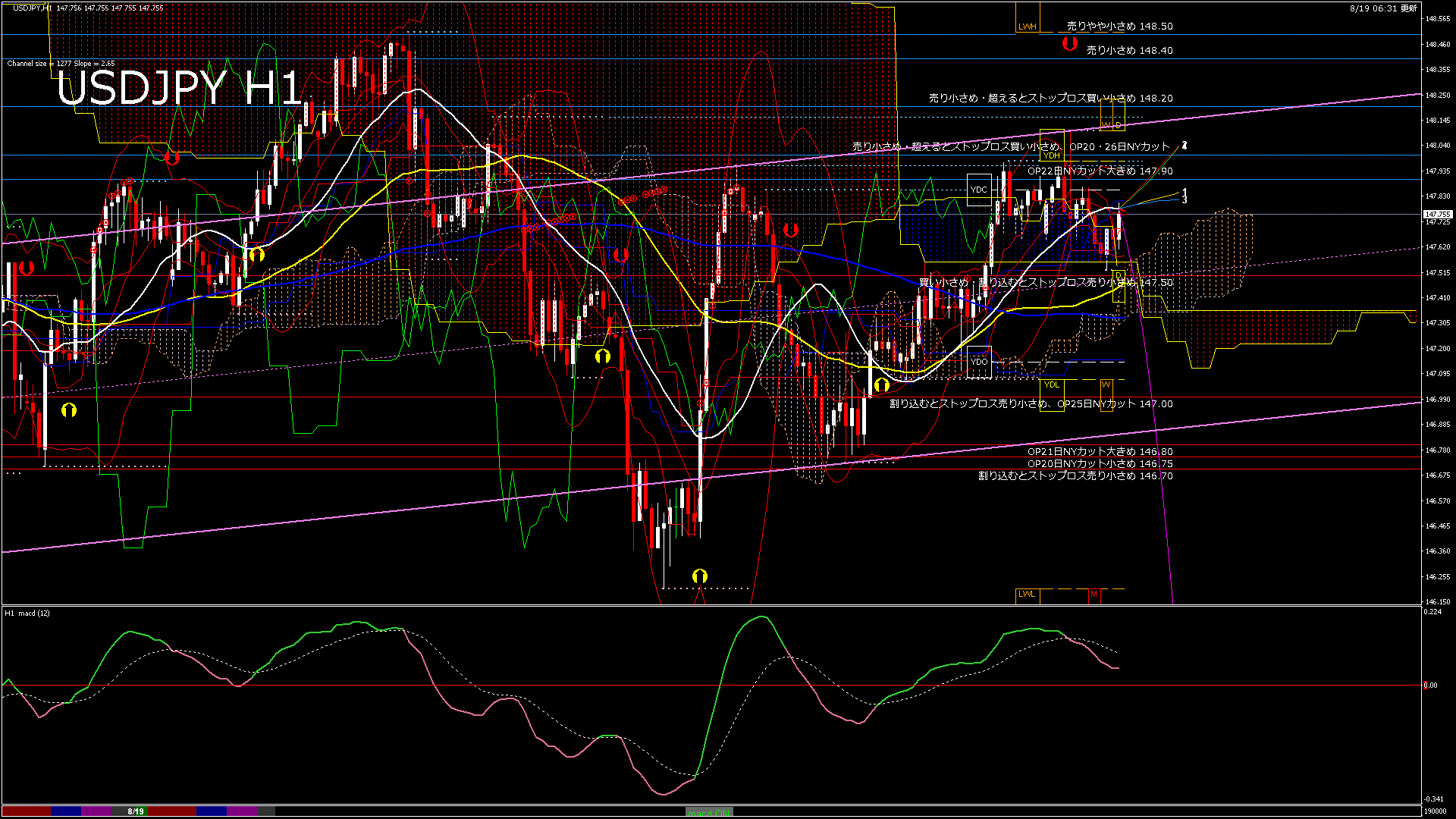 USDJPY-H1移動平均線と現在値(RSI)-2025.8.19 19:00:00