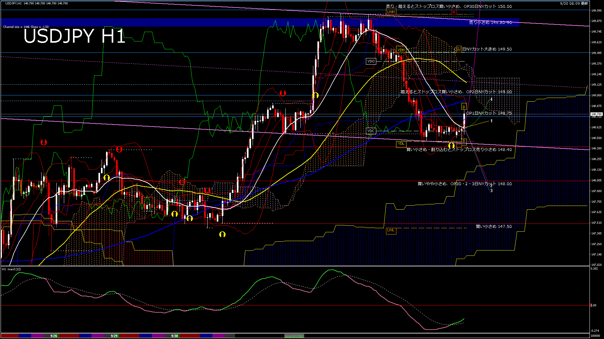 USDJPY-H1移動平均線と現在値(RSI)-2025.9.30 11:00:00