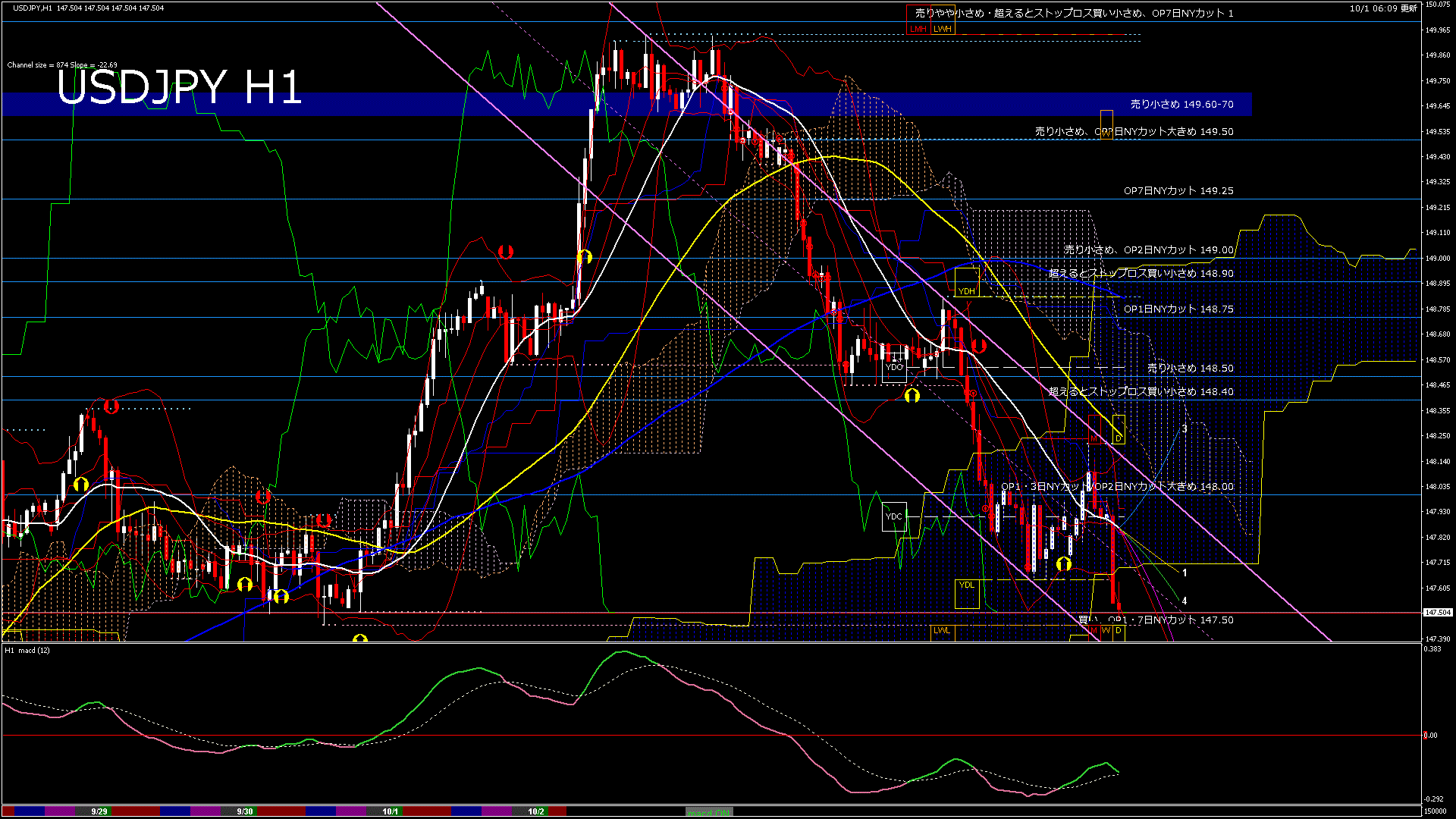 USDJPY-H1移動平均線と現在値(RSI)-2025.10.1 16:00:00