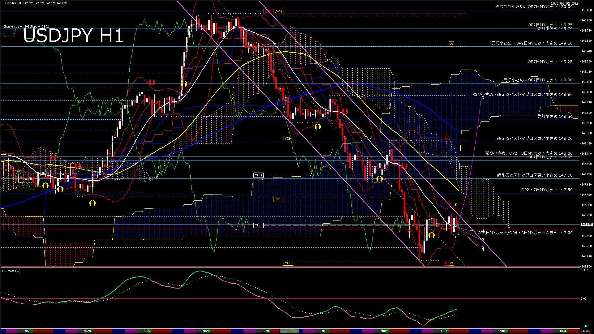 USDJPY-H4移動平均線と現在値(RSI)-2025.10.2 14:00:08