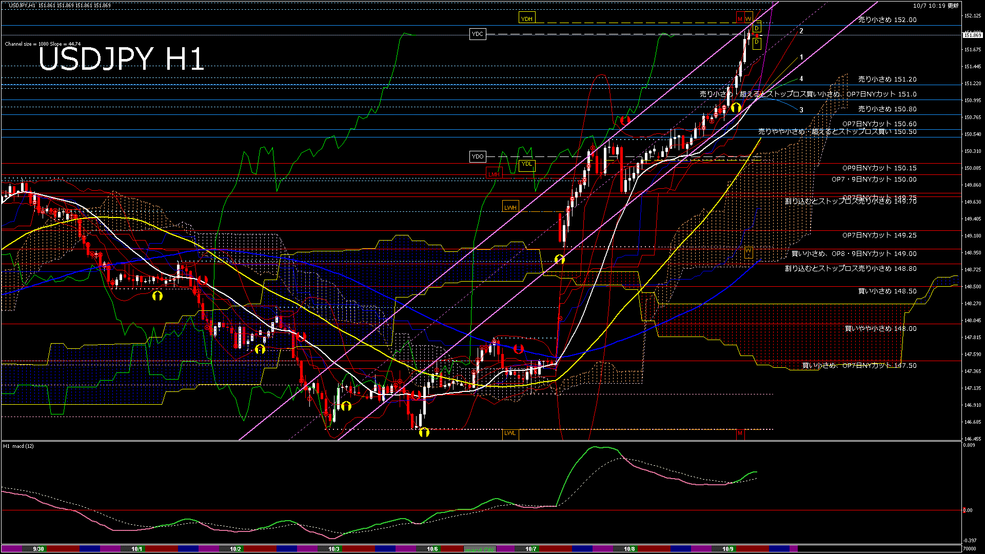 USDJPY-H1移動平均線と現在値(RSI)-2025.10.8 12:00:00