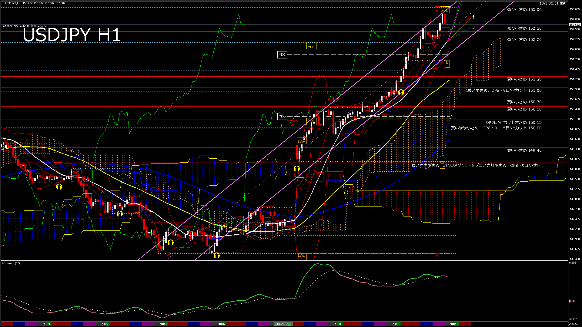 USDJPY-H1移動平均線と現在値(RSI)-2025.10.8 20:00:00