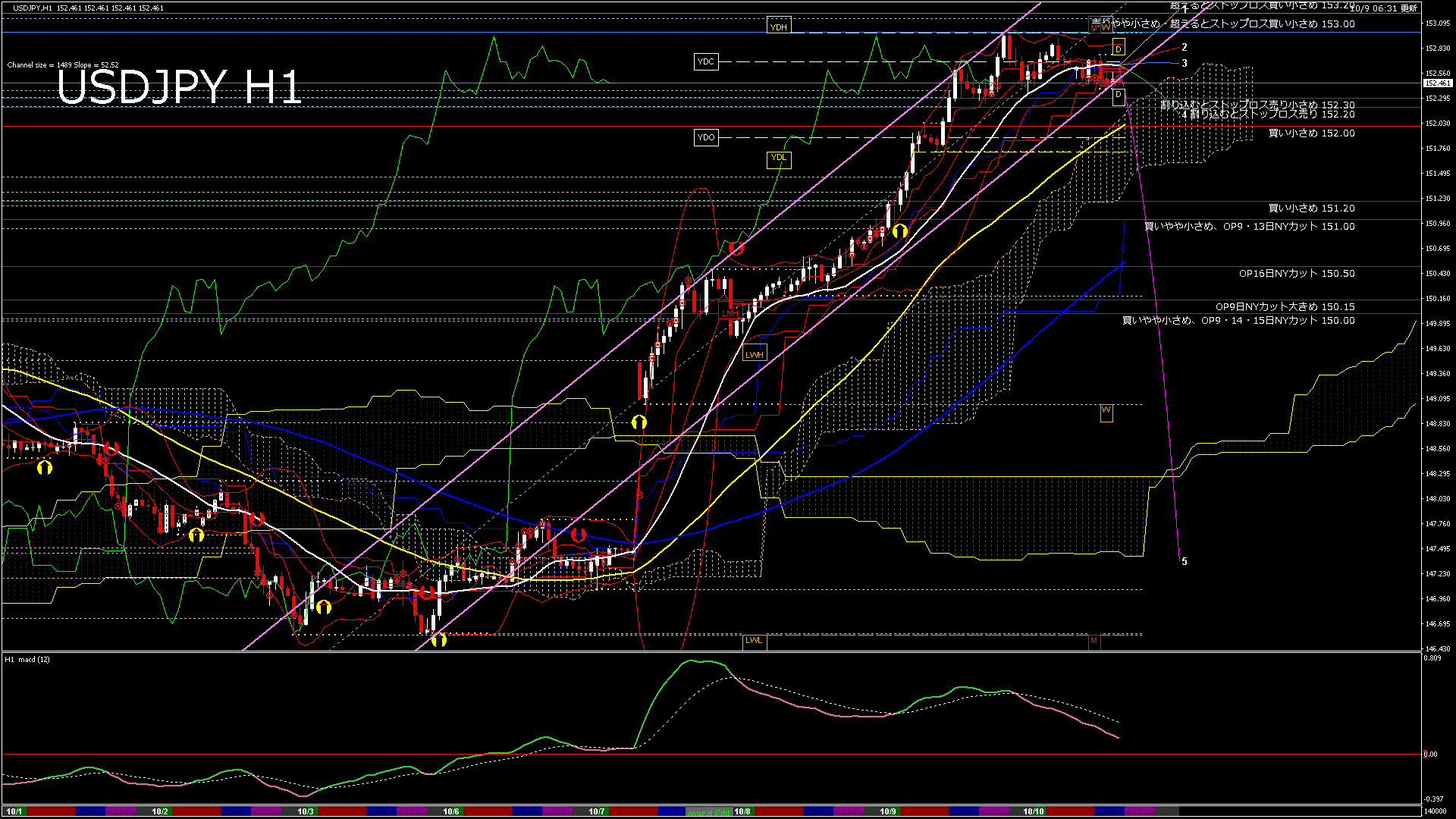 USDJPY-H4移動平均線と現在値(RSI)-2025.10.9 14:00:07