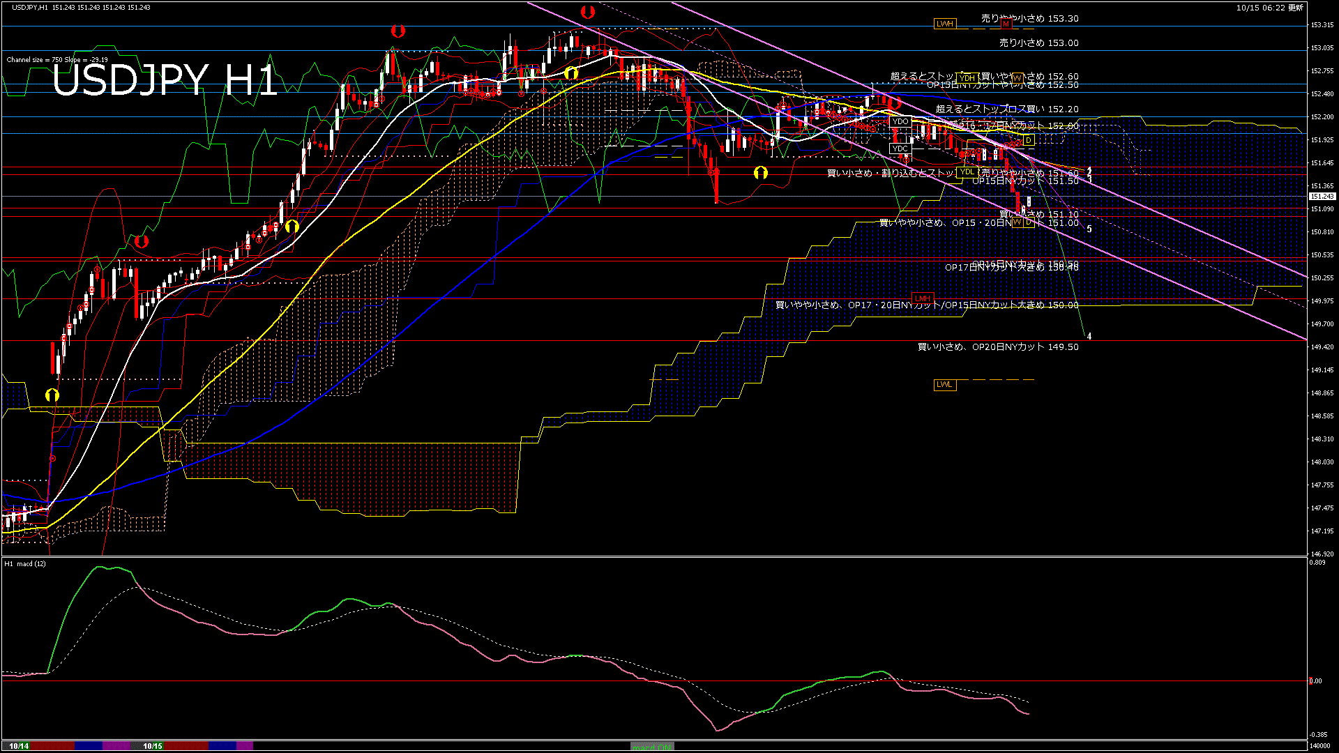 USDJPY-H1移動平均線と現在値(RSI)-2025.10.15 13:00:00