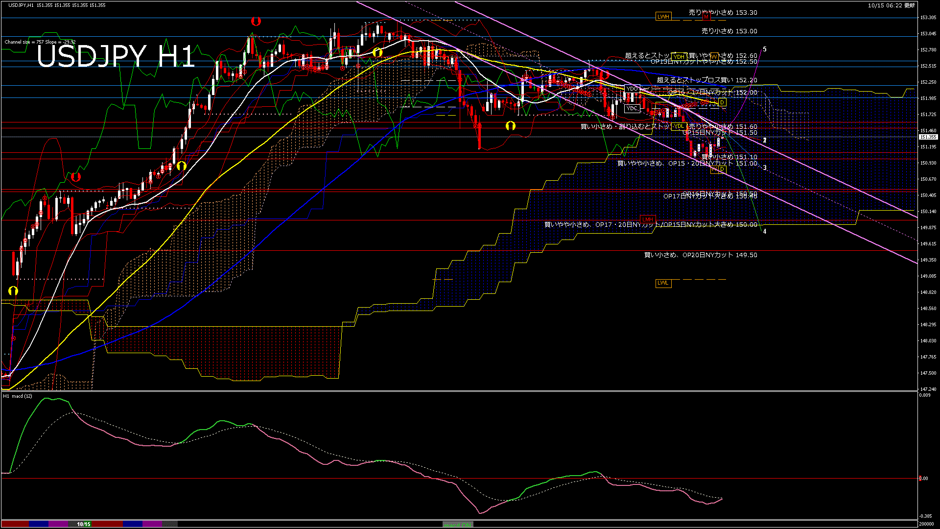 USDJPY-H1移動平均線と現在値(RSI)-2025.10.15 19:00:00