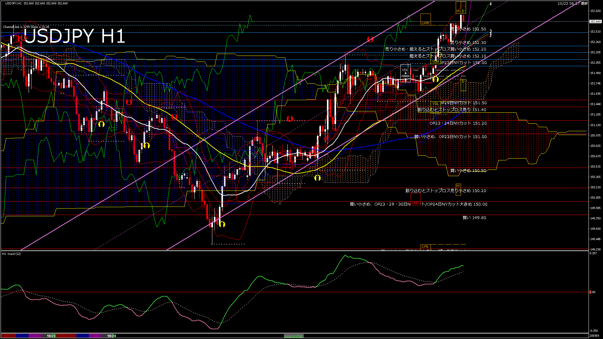 USDJPY-H1移動平均線と現在値(RSI)-2025.10.23 20:00:00
