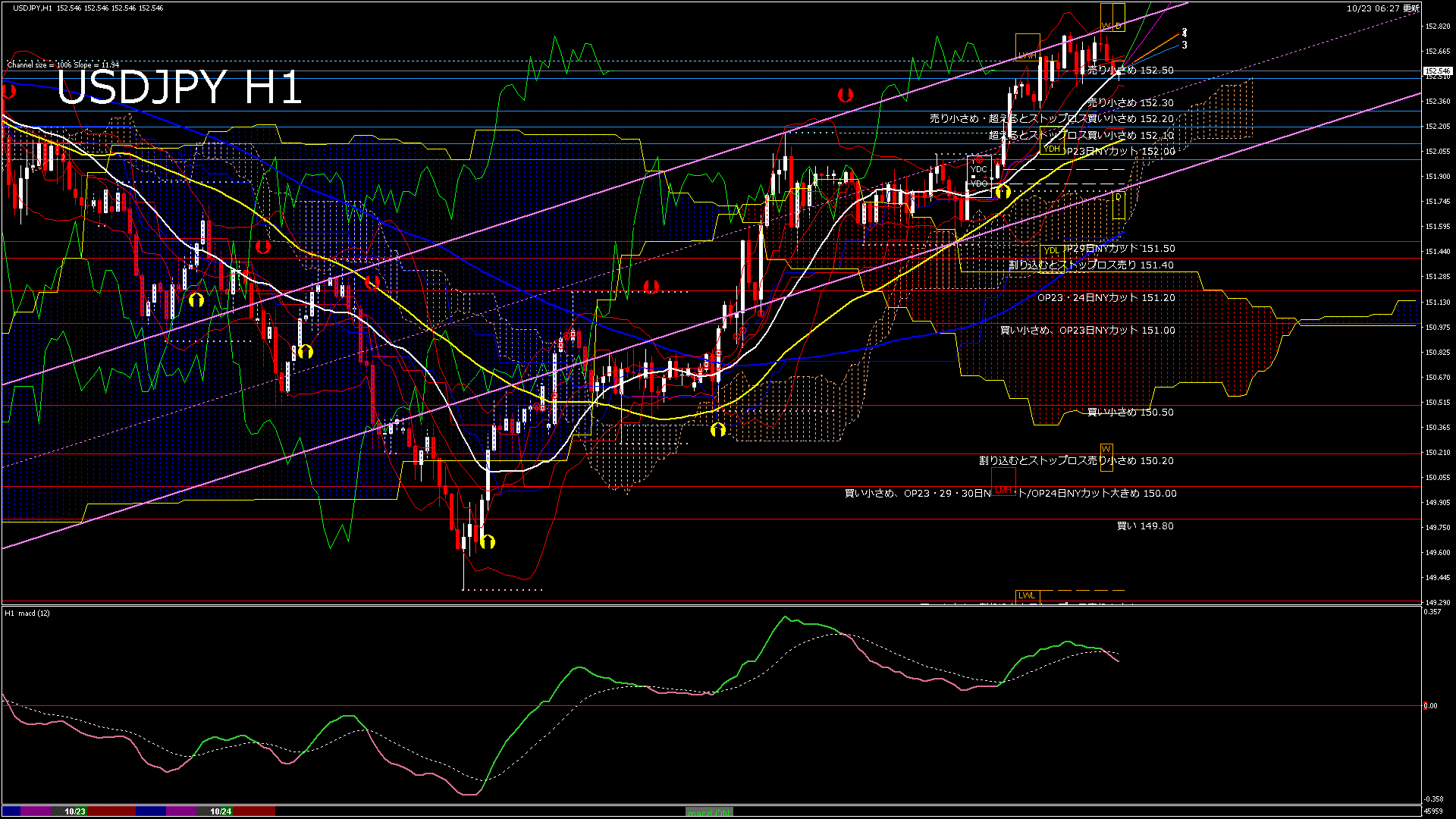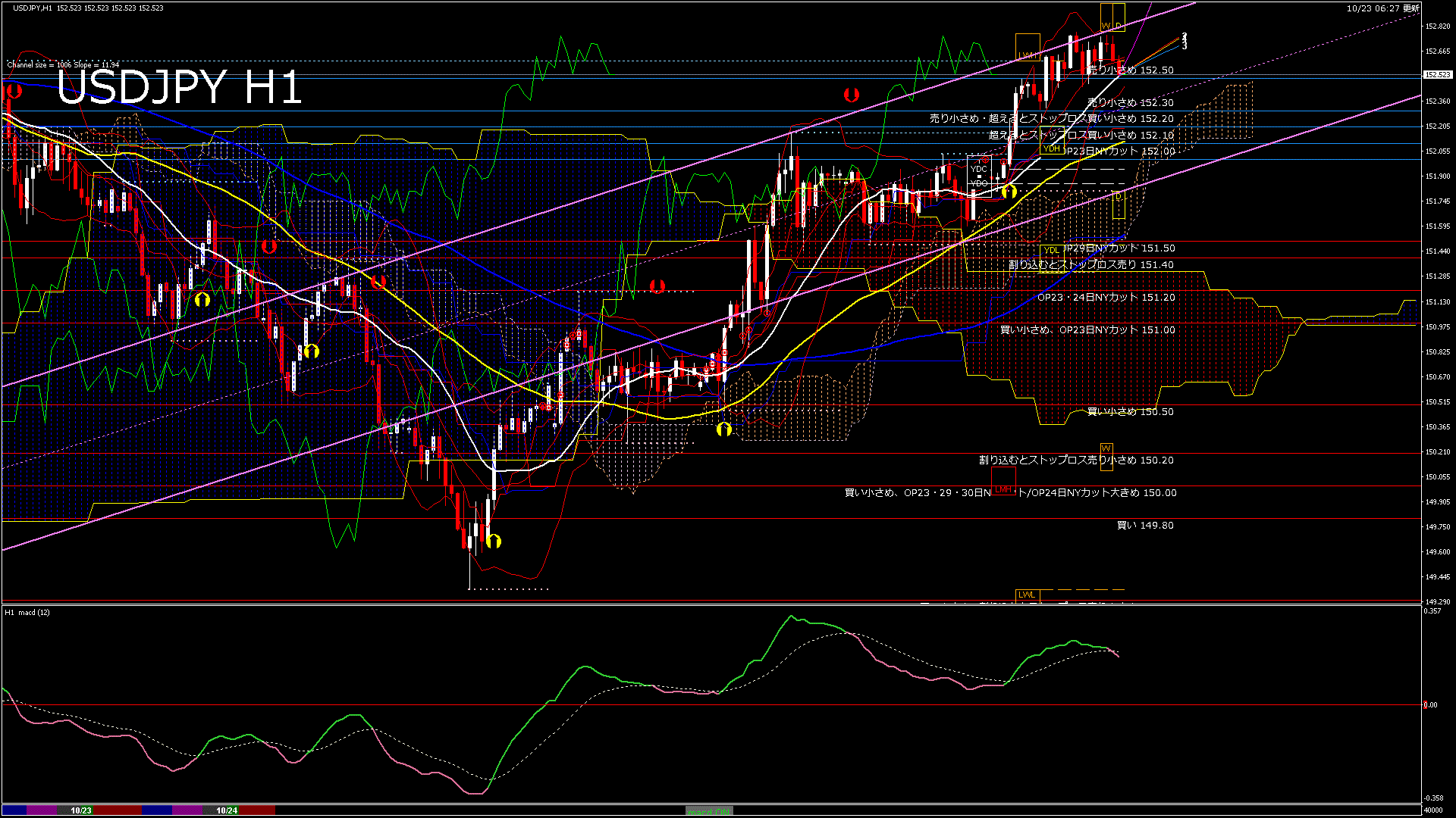 USDJPY-H1移動平均線と現在値(RSI)-2025.10.24 4:00:00