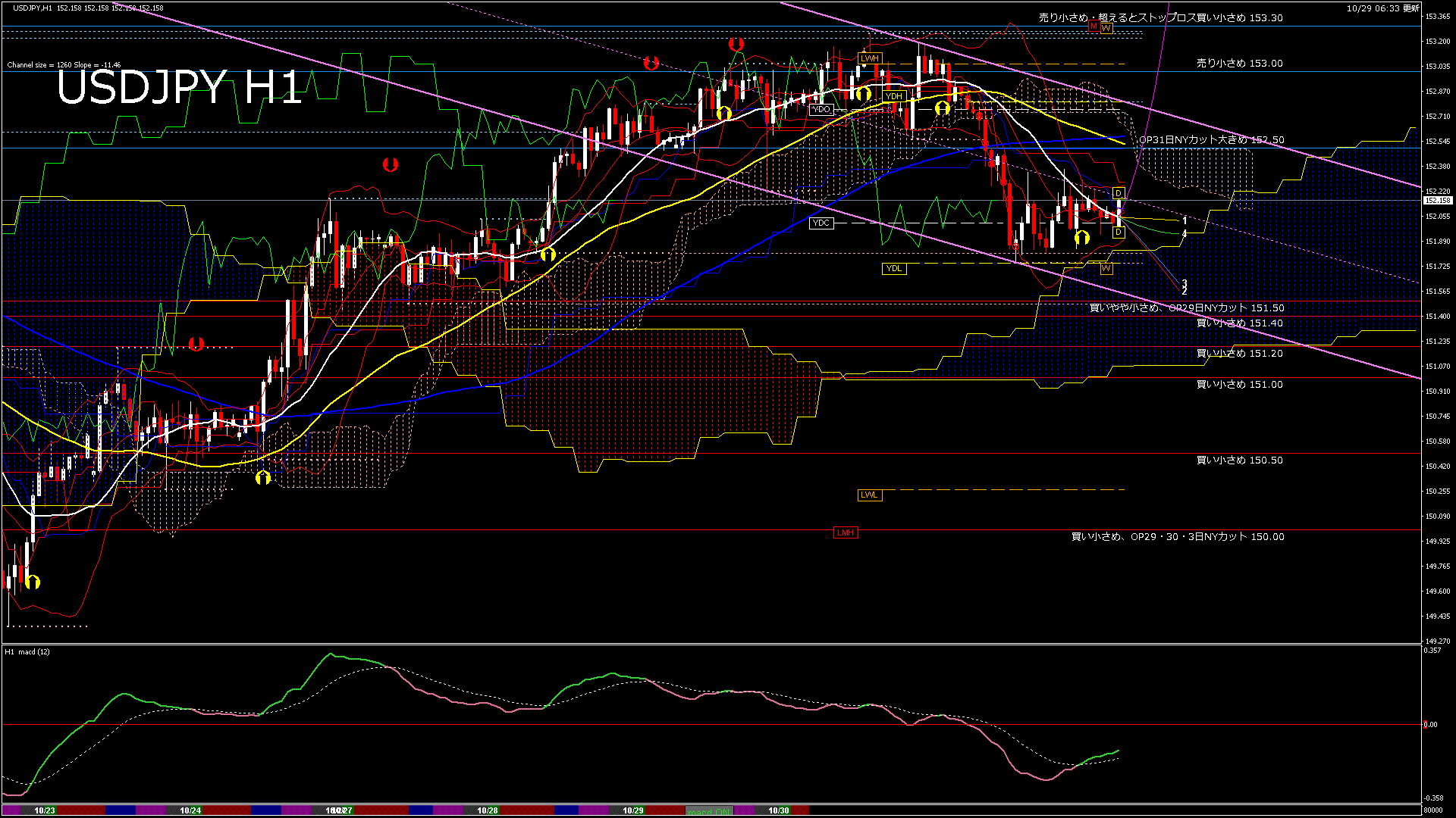 USDJPY-H1移動平均線と現在値(RSI)-2025.10.29 8:00:00