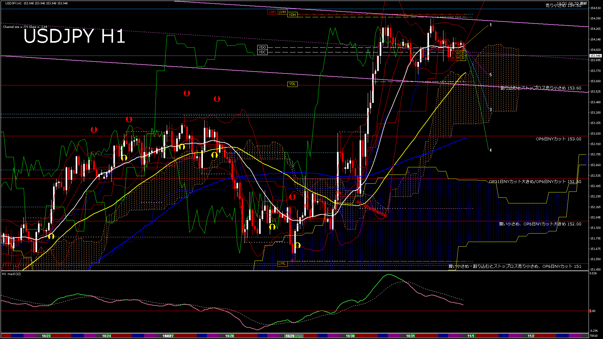 USDJPY-H1移動平均線と現在値(RSI)-2025.11.3 7:00:10