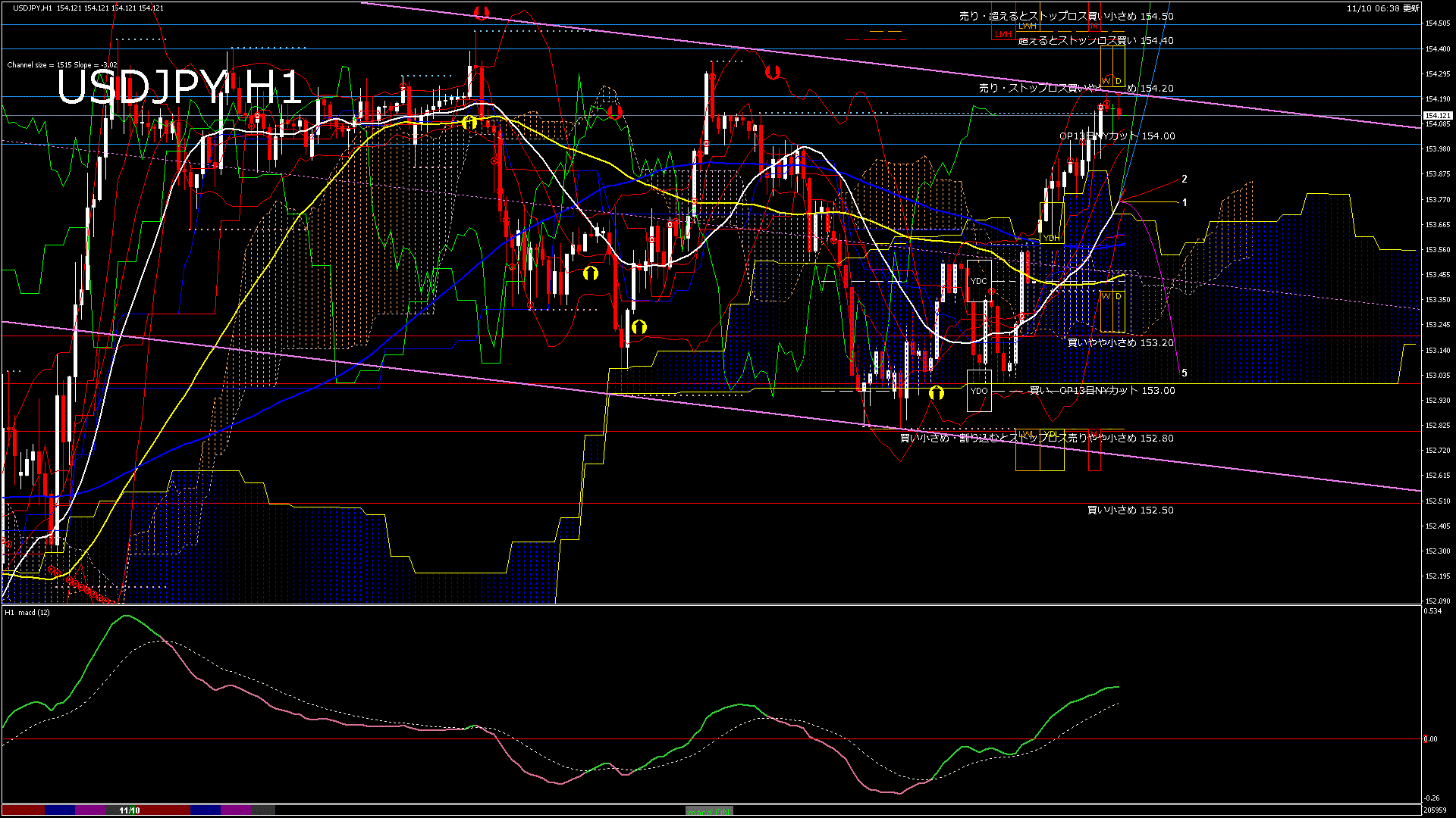 USDJPY-H1移動平均線と現在値(RSI)-2025.11.10 20:00:00