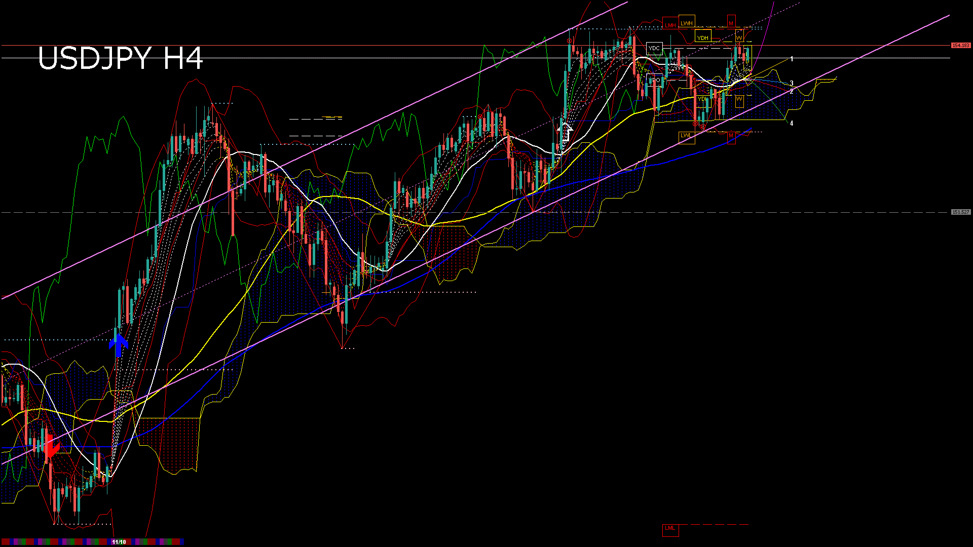 USDJPY-本日の経済指標と日足移動平均線(RSI)-2025.11.11 7:00:07