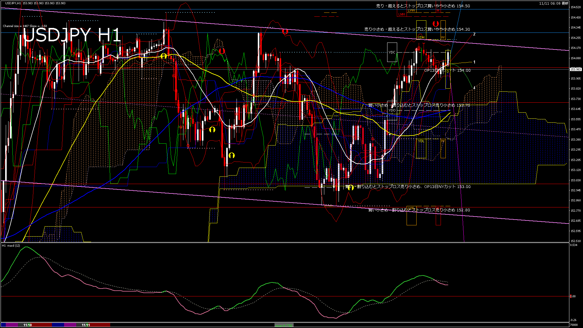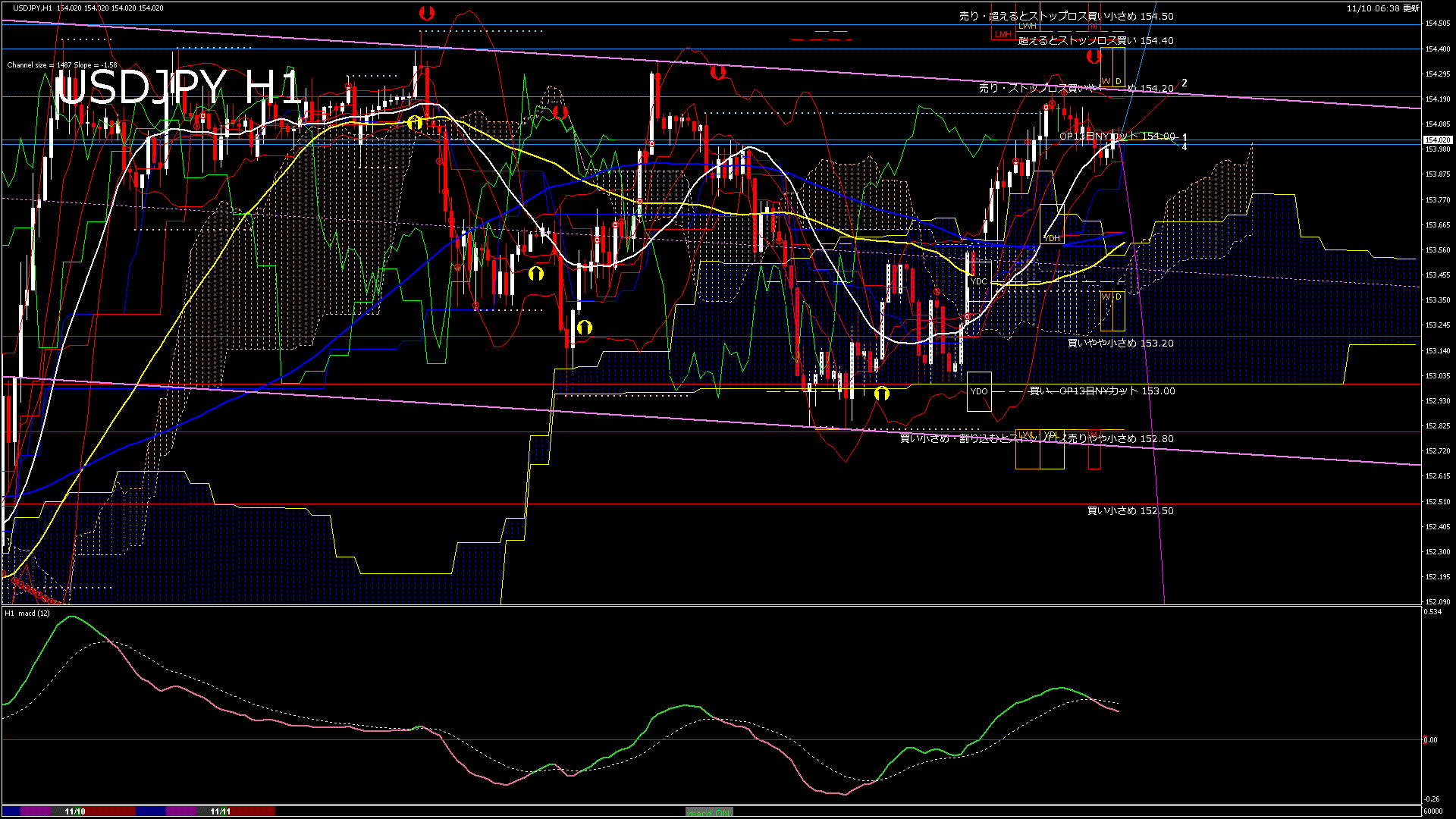 USDJPY-H1移動平均線と現在値(RSI)-2025.11.11 7:00:00