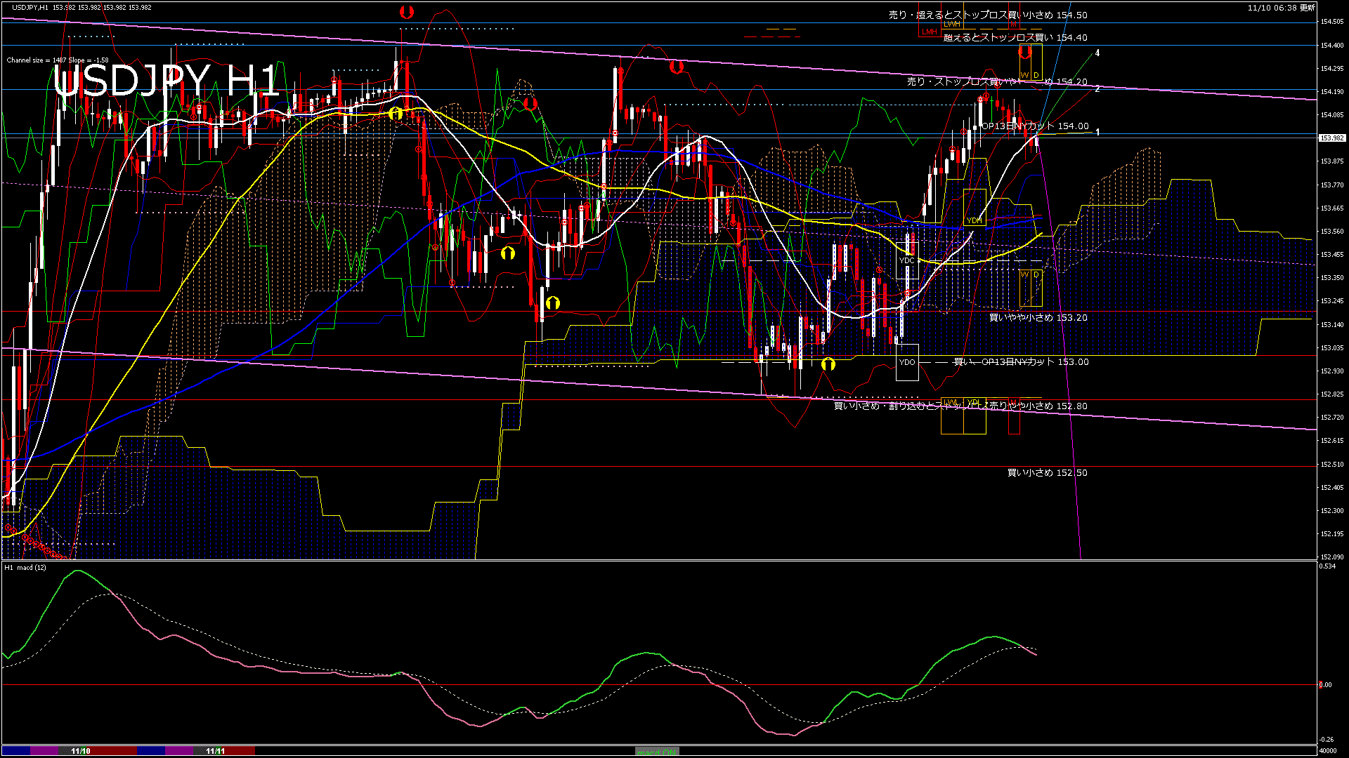 USDJPY-H1移動平均線と現在値(RSI)-2025.11.11 4:00:00