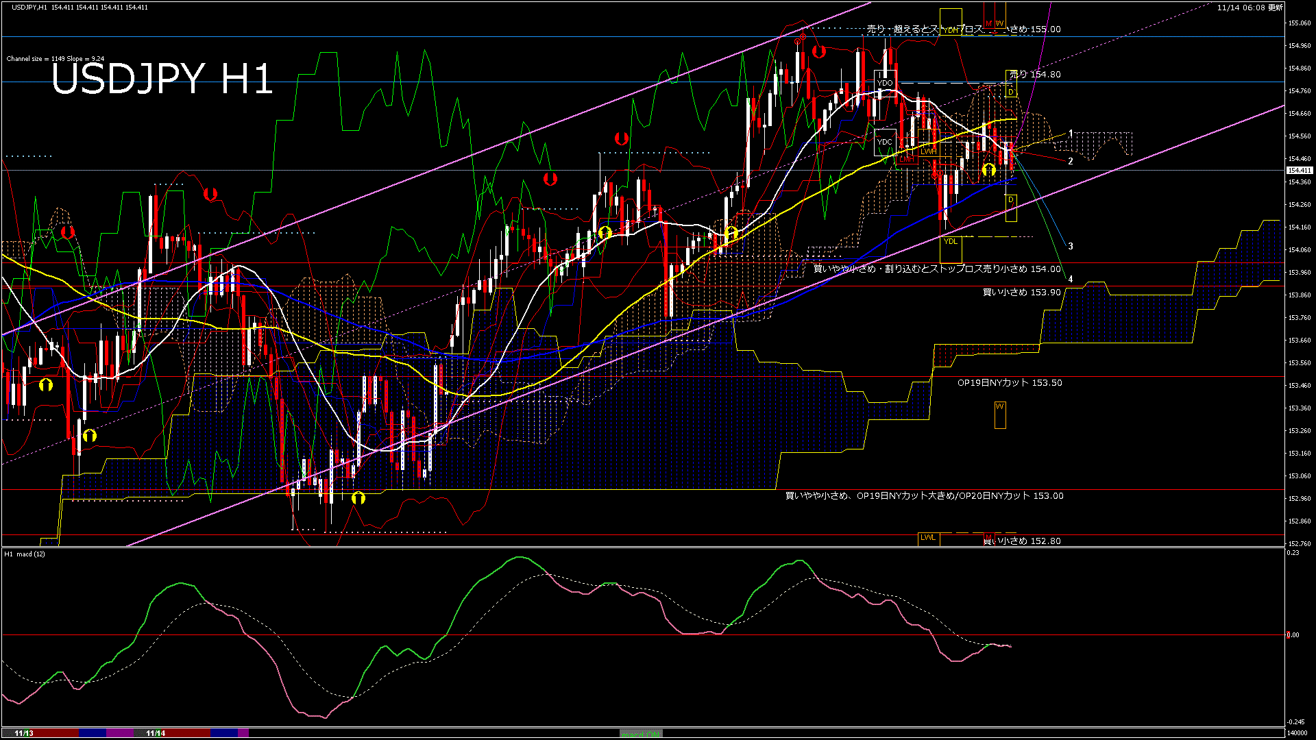 100日移動平均線:154.371