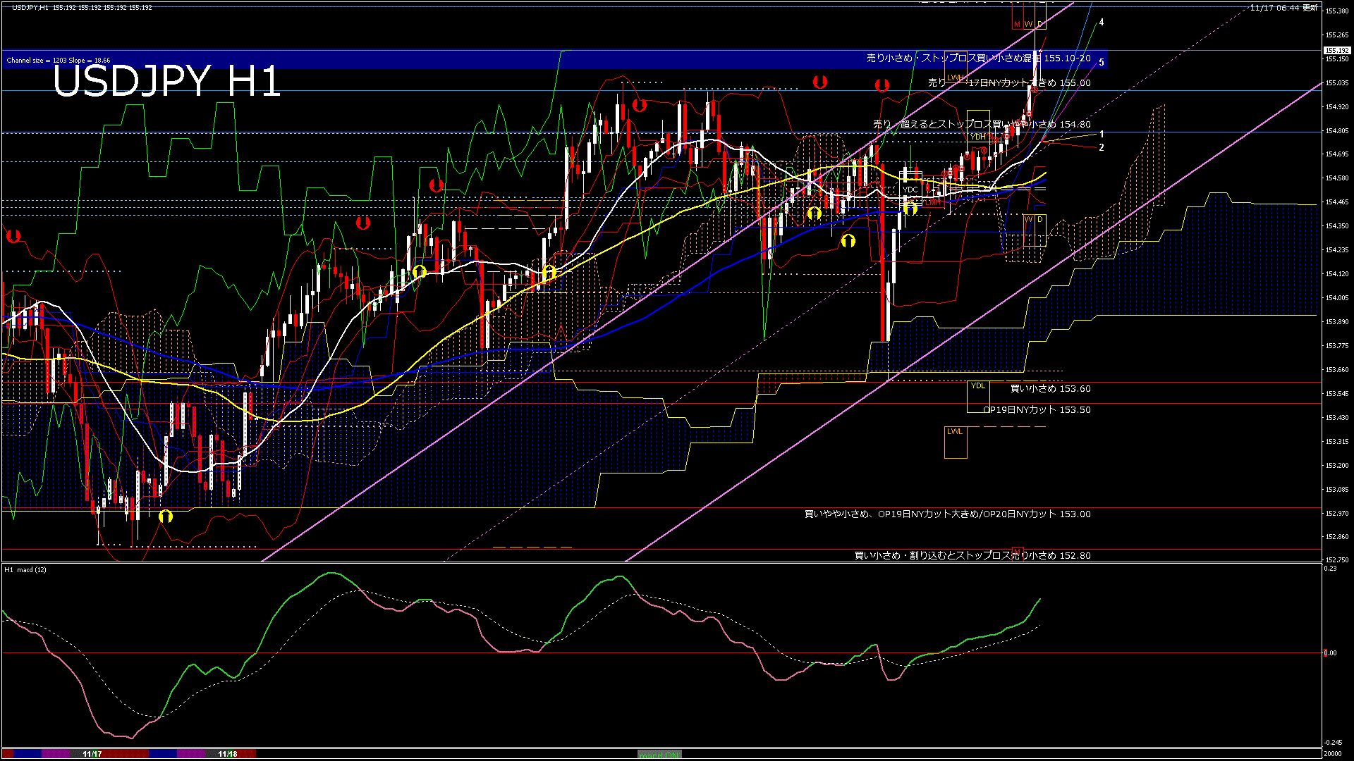 USDJPY-H1移動平均線と現在値(RSI)-2025.11.18 1:00:00