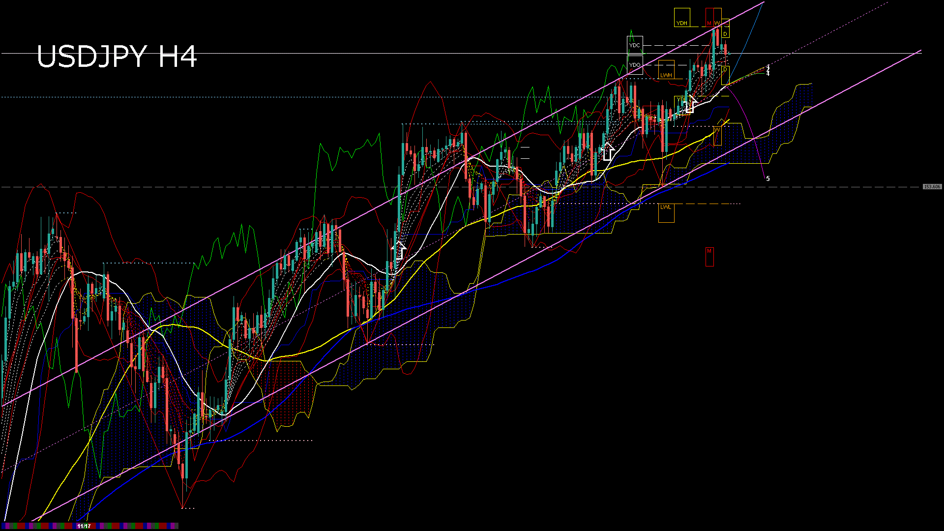 USDJPY-H4移動平均線と現在値(RSI)-2025.11.19 15:00:06