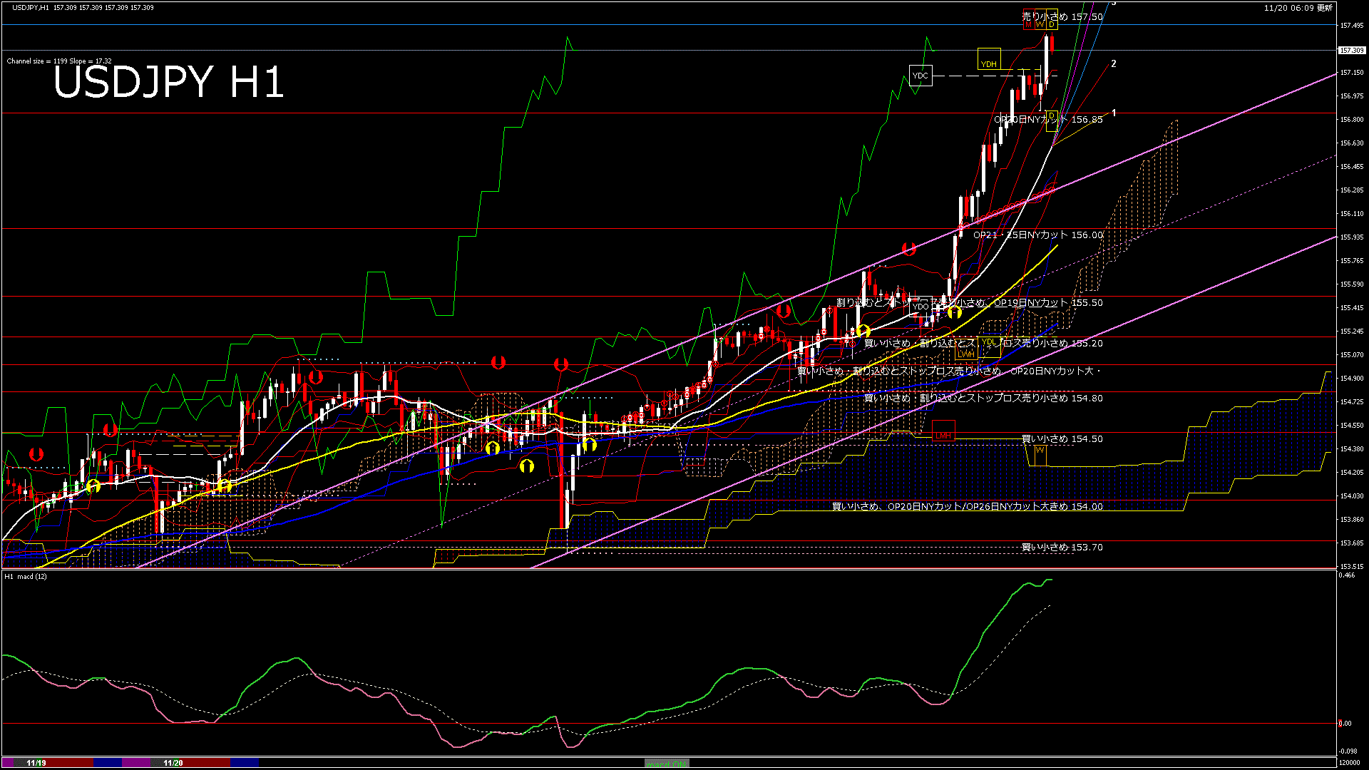 USDJPY-H4移動平均線と現在値(RSI)-2025.11.20 11:00:07