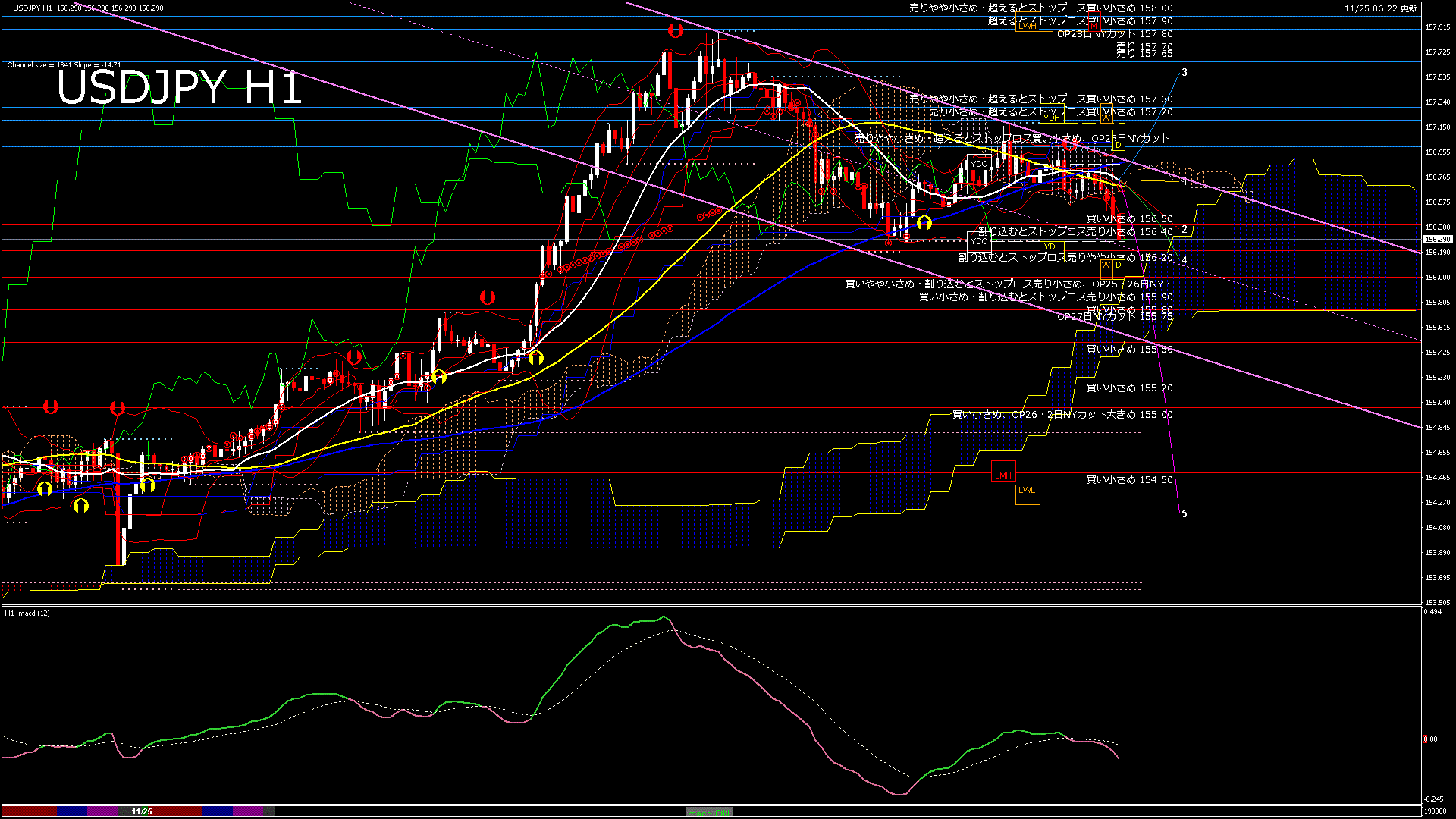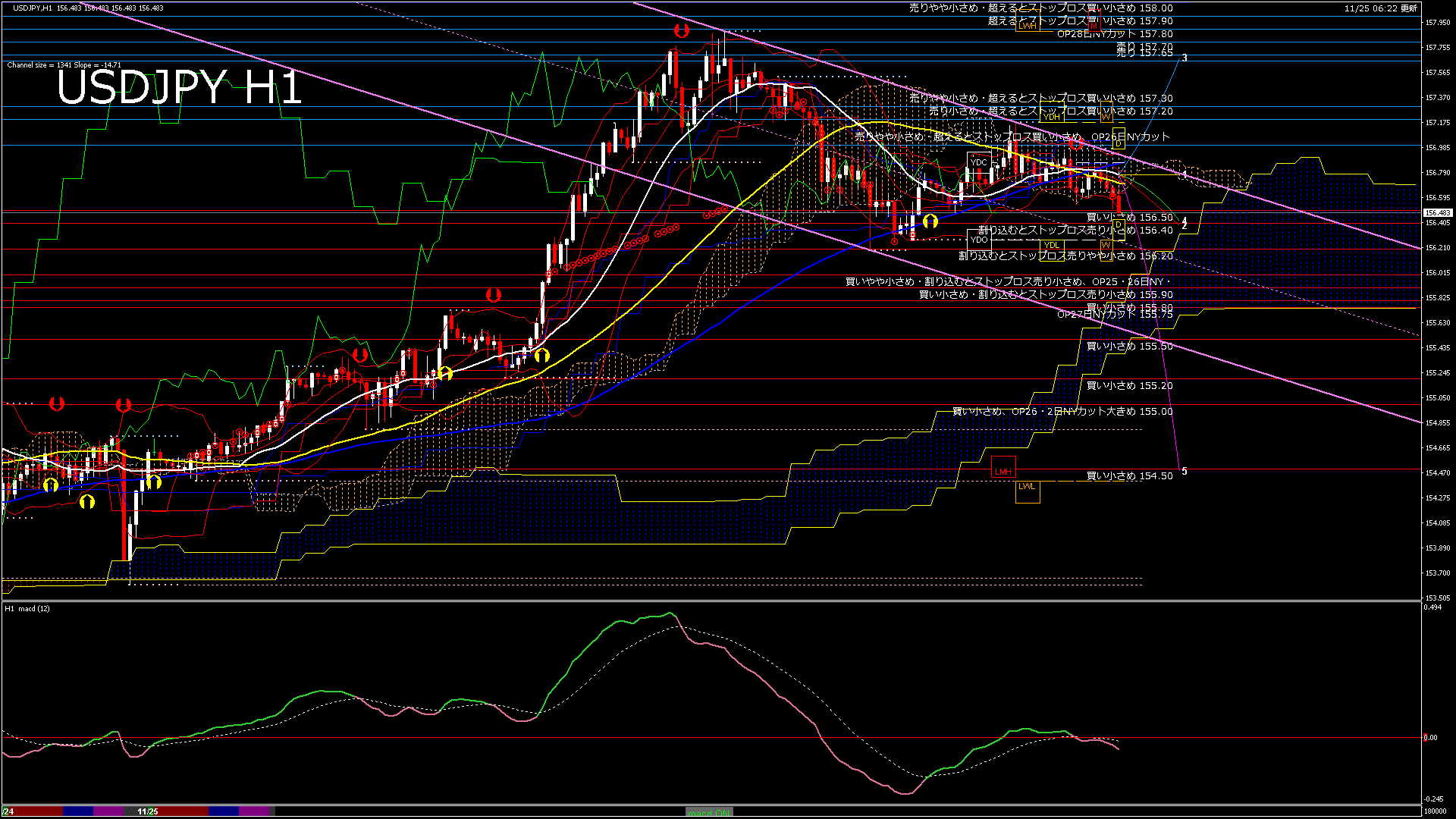 USDJPY-H1移動平均線と現在値(RSI)-2025.11.25 18:00:00